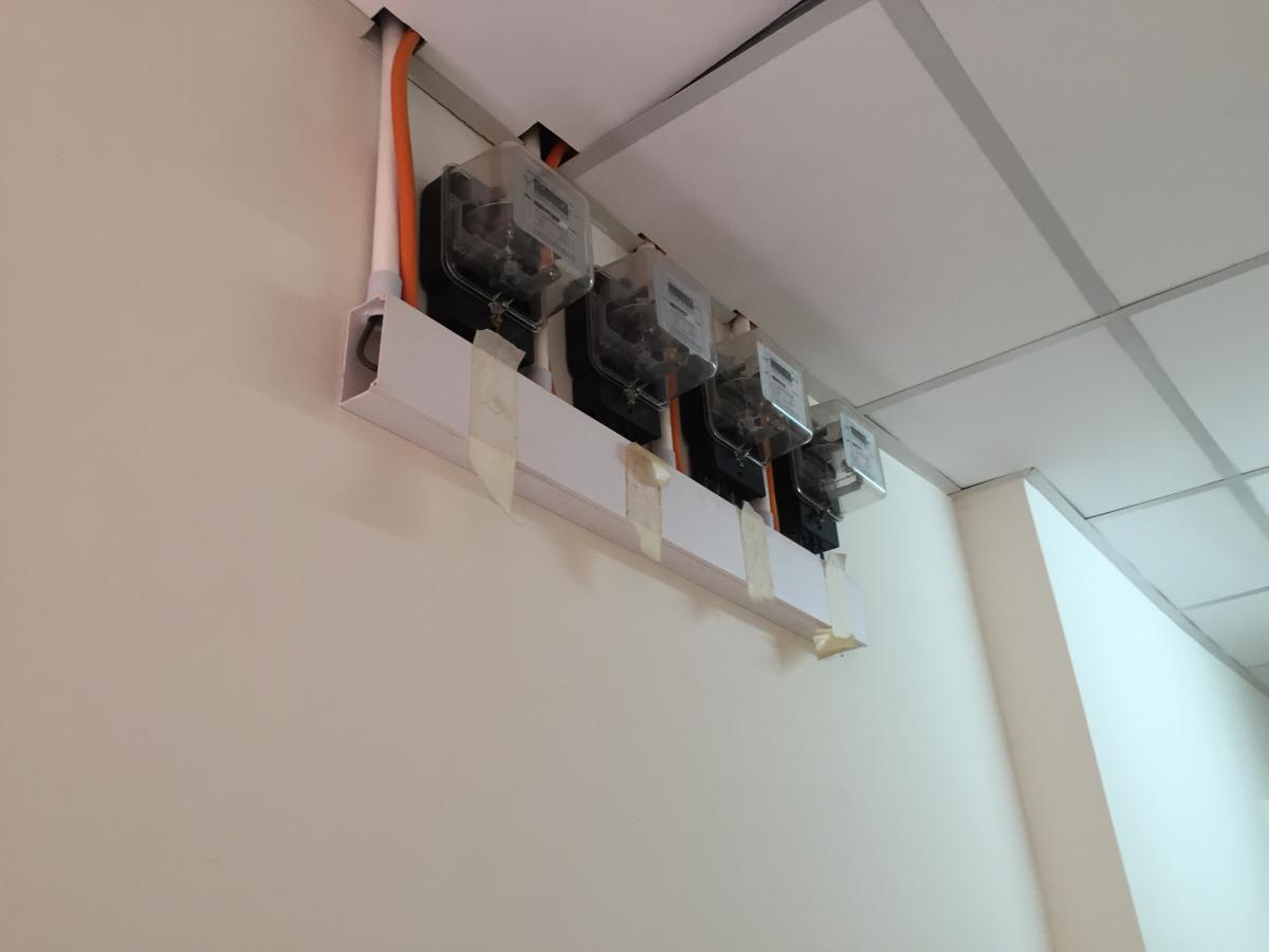 4個電錶平排,如果電錶電線短路起火,後果不堪設想。