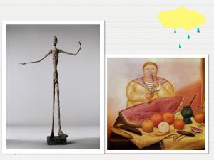 當波特羅頻繁以胖女人為題創作畫作和雕塑的時候,賈科梅蒂(Alberto Giacometti)看中了「瘦男人」這個形象。這位活躍在二十世紀上半葉的知名雕塑家,幾乎所有的作品都是極瘦極長的形狀。