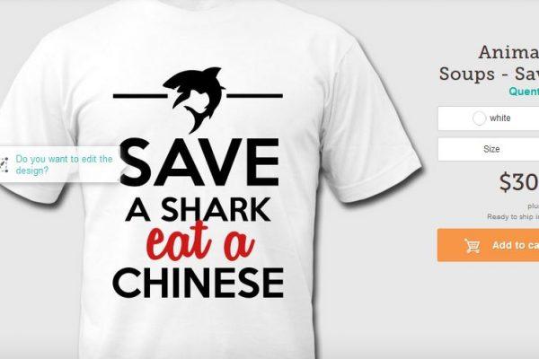 【橙訊】德國著名服飾訂制網站Spreadshirt,近日出售兩款涉嫌歧視中國人的T恤,分別寫有「救一隻狗,吃一個中國人」、「救一條鯊魚,吃一個中國人」,引發爭議。該公司辯稱字句是一種幽默,不過中國駐德大使館經商處表示強烈不滿,促其下架。