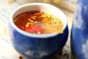 桂花的神話傳說不斷出現,尤其是唐代小說中的吳剛伐桂的故事,更在中國民間廣泛流傳。傳說中說:月中有桂樹,高五百丈。漢朝河西人吳剛,因學仙時,不遵道規,被罰至月中伐桂,但此樹隨砍隨合,總不能伐倒。千萬年過去了,吳剛總是每日辛勤伐樹不止,而那棵神奇的桂樹卻依然如故,生機勃勃,每臨中秋,馨香四溢。只有中秋這一天,吳剛才在樹下稍事休息,與人間共度團圓佳節。毛澤東的詩詞「問訊吳剛何所有,吳剛捧出桂花酒」,就源出于這一典故。