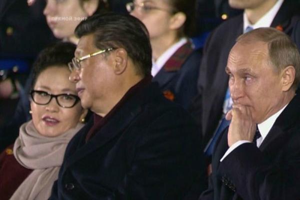 這兩張照片攝於5月9日俄羅斯紅場閱兵當日,當晚習近平及夫人彭麗媛和俄羅斯總統普京出席紅場音樂會,聯合國秘書長等數十個國家元首也在觀禮台上觀看兩個多小時表演和紅場焰火秀。