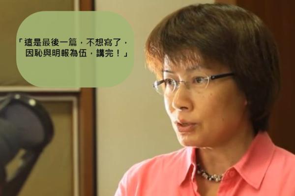 【橙訊】據本網綜合報道,經常撰文撐政府和警隊的專欄作家屈穎妍(見上圖)今日在《明報》發表一篇題為《道不同不相為謀》的文章,稱從此停寫《明報》專欄,更呼籲讀者杯葛《明報》,「這是最後一篇,不想寫了,因恥與明報為伍,講完!」