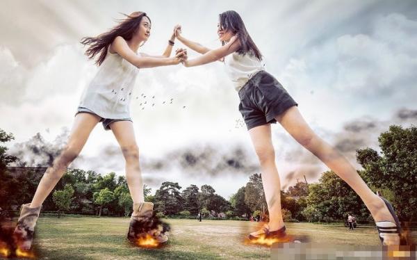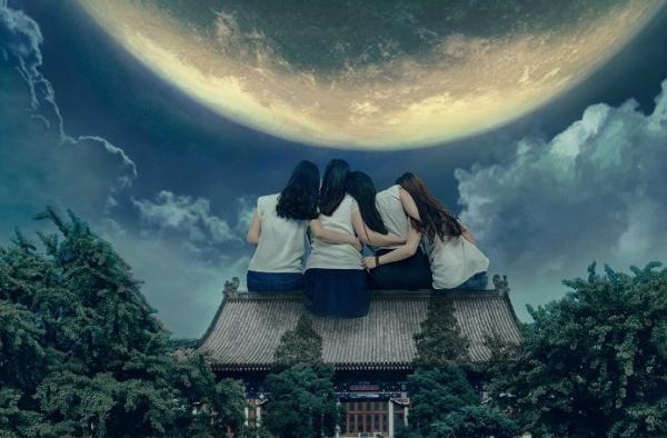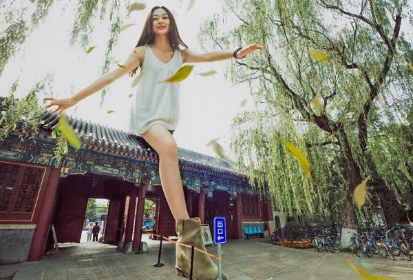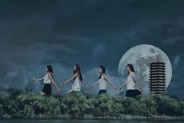 在這組畢業照中,四位美女畢業生坐在學校的屋頂上,或者腳跨北大西門,或是四人肩並肩賞月和在月光下漫步,甚至還在校園內打架。