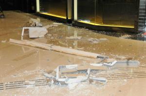 事發在傍晚6時許,商場內近周大福珠寶金行對開一幅4米乘6米的假天花突然塌下,途人慌忙走避。其中一名母親和兩名兒子走避不及,被塌下的石屎擊傷。據悉,該名母親手臂受傷,她手抱約2歲的小兒子則面部受傷,另外6歲的大兒子手部受傷,3人送往將軍澳醫院檢查治理。警方其後封鎖現場調查,有大批市民圍觀。