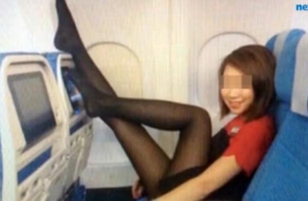 【橙訊】港龍航空懷疑有空姐洩露艷照!據本港媒體報道指,港龍內部近日瘋傳一張空姐相片,一名空姐身穿制服,於機艙座位上舉起雙腿,「黑絲長腳」任人觀看,動作相當誘惑。