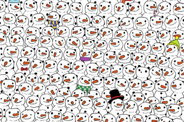 【橙訊】一位匈牙利藝術家在fb上發了張聖誕拼圖,因多人難以找到圖中的熊貓,在網上迅速走紅。圖中有上百只可愛的雪人,但其中藏有一只熊貓。