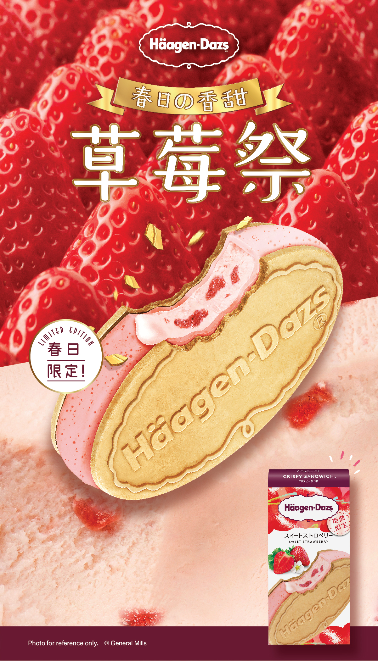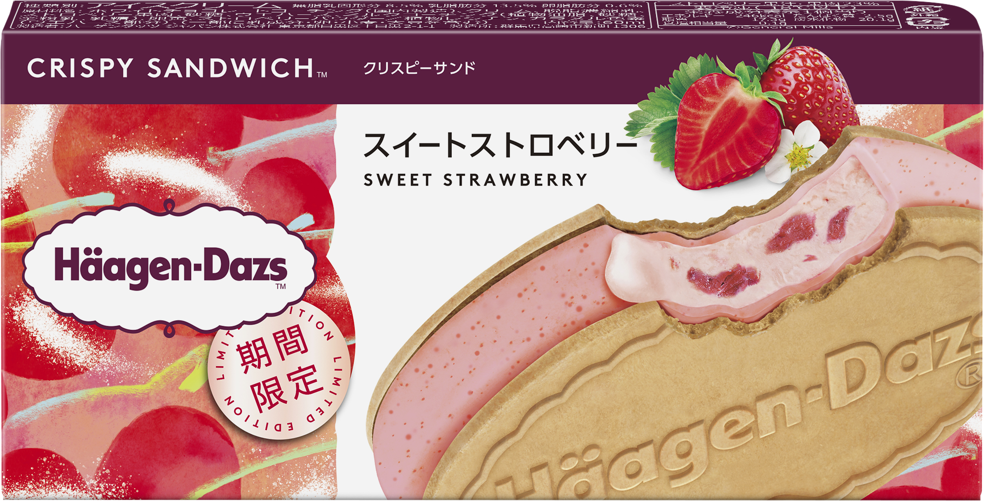 Häagen-Dazs™更同步推出日本直送的「甜心草莓冰凍甜點三明治」,嚴選濃郁香甜的士多啤梨果肉,融入士多啤梨雪糕之中。外層裹上士多啤梨朱古力,散發出陣陣甜莓果香,另外配搭外層鬆脆的威化,將口感提升到更高的層次。