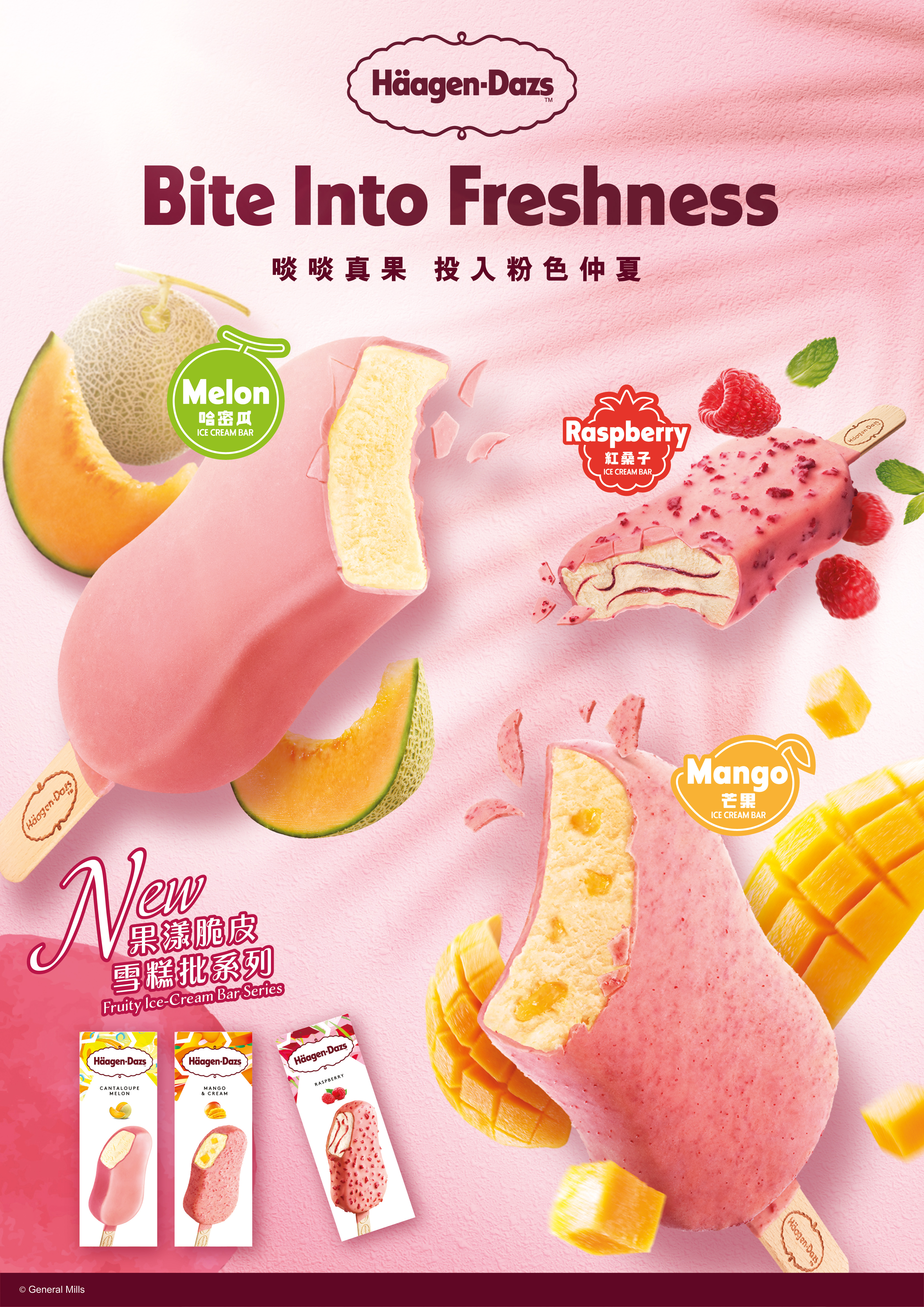 【橙訊】Häagen-Dazs™為今個夏天添上少女感滿滿的粉紅色,隆重推出全新果漾脆皮雪糕批系列,以粉紅色果漾脆皮包裹清新真果滋味。系列包括三款粉色雪糕批,包括哈密瓜、芒果及紅桑子口味,源自當季各地新鮮品種,由內至外爆發清新馥郁果香。