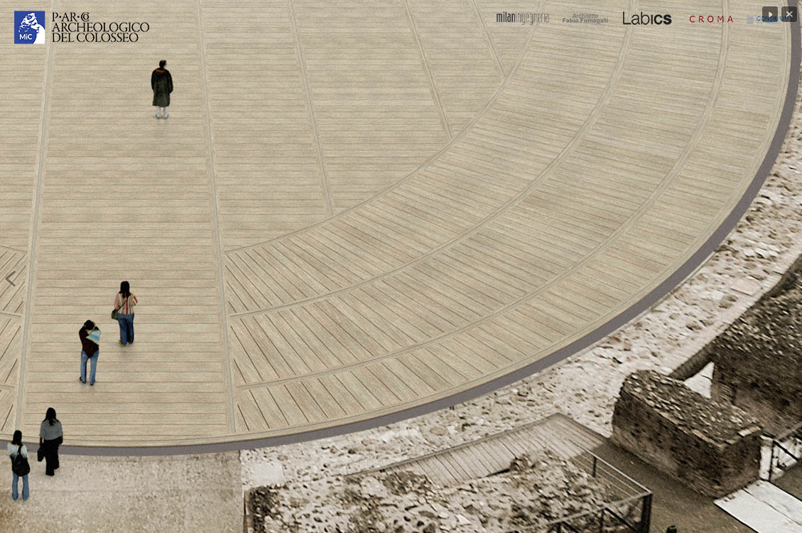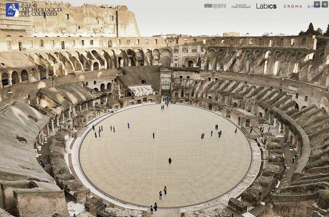 古代羅馬是有血腥嗜好的奴隸制社會,競技場上,每天都有形形式式的「演出」,包括角鬥表演與行刑。因此,只有隨時面對死亡的角鬥士、死囚和猛獸等才能站在舞台中央,接受四方八面的凝視。Milan Ingegneria的新設計希望能遊客深入舞台中央,欣賞這座遺跡的雄偉壯觀,並體驗2000年前的競技臨場感。「你能夠在上面行走,與19世紀末之前的遊客以相同的方式看到它。」意大利文化部長佛蘭契斯奇尼(Dario Franceschini)說。