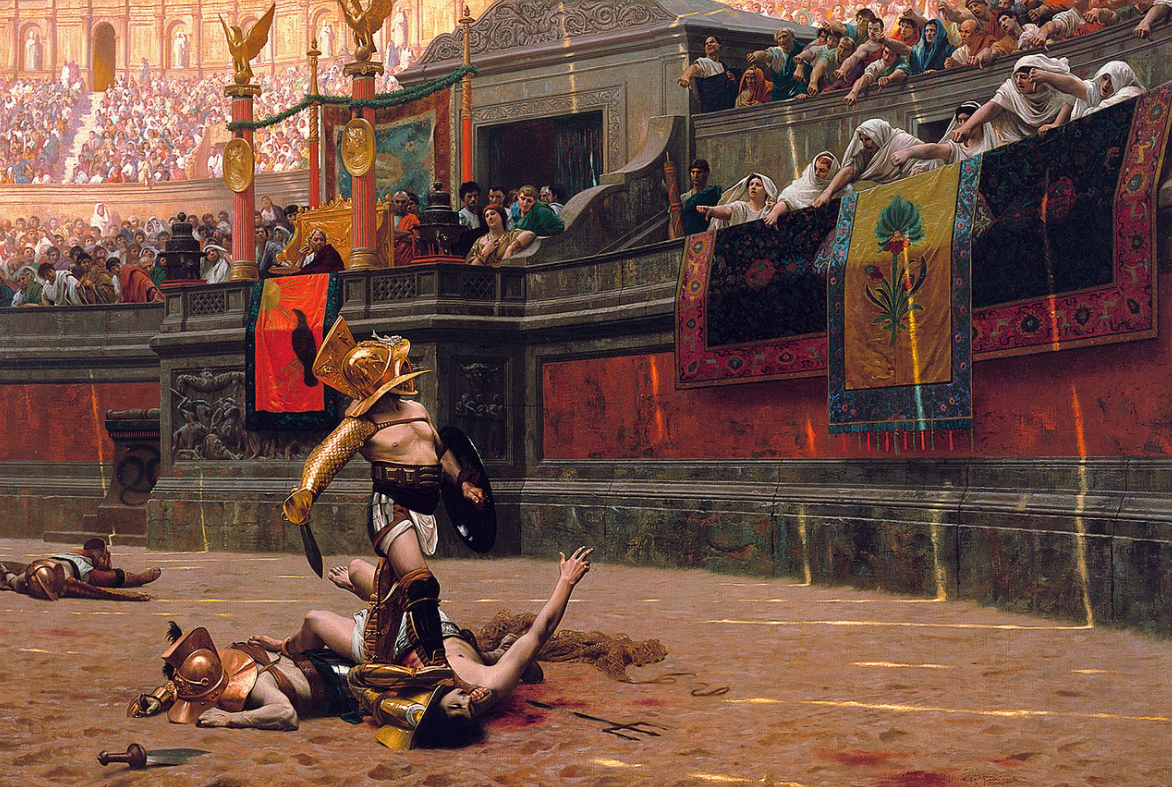 讓.里奧.傑洛姆在1872年所繪的Pollice Verso,顯示當時觀眾看表演的情景