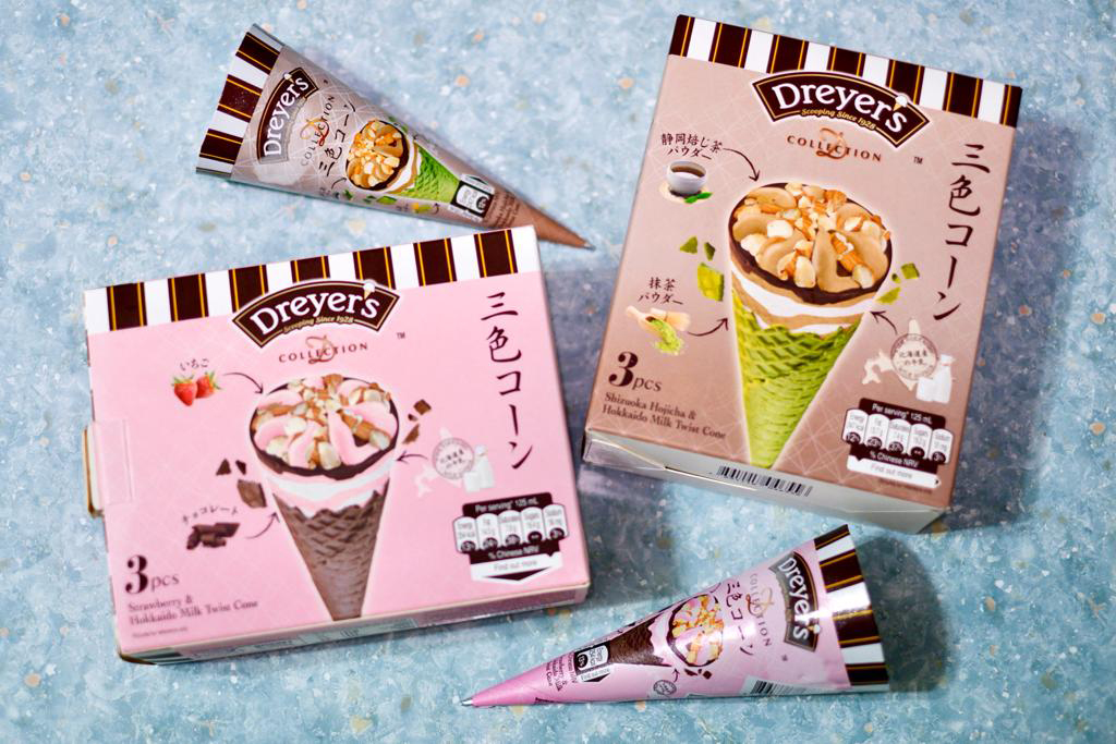 想重溫日本地道甜品滋味,不妨考慮試試全新兩款DREYER’S D-COLLECTION™三色北海道牛乳扭紋脆筒系列,尋覓一啖三重美味的滋味,體驗不同的日式風味。