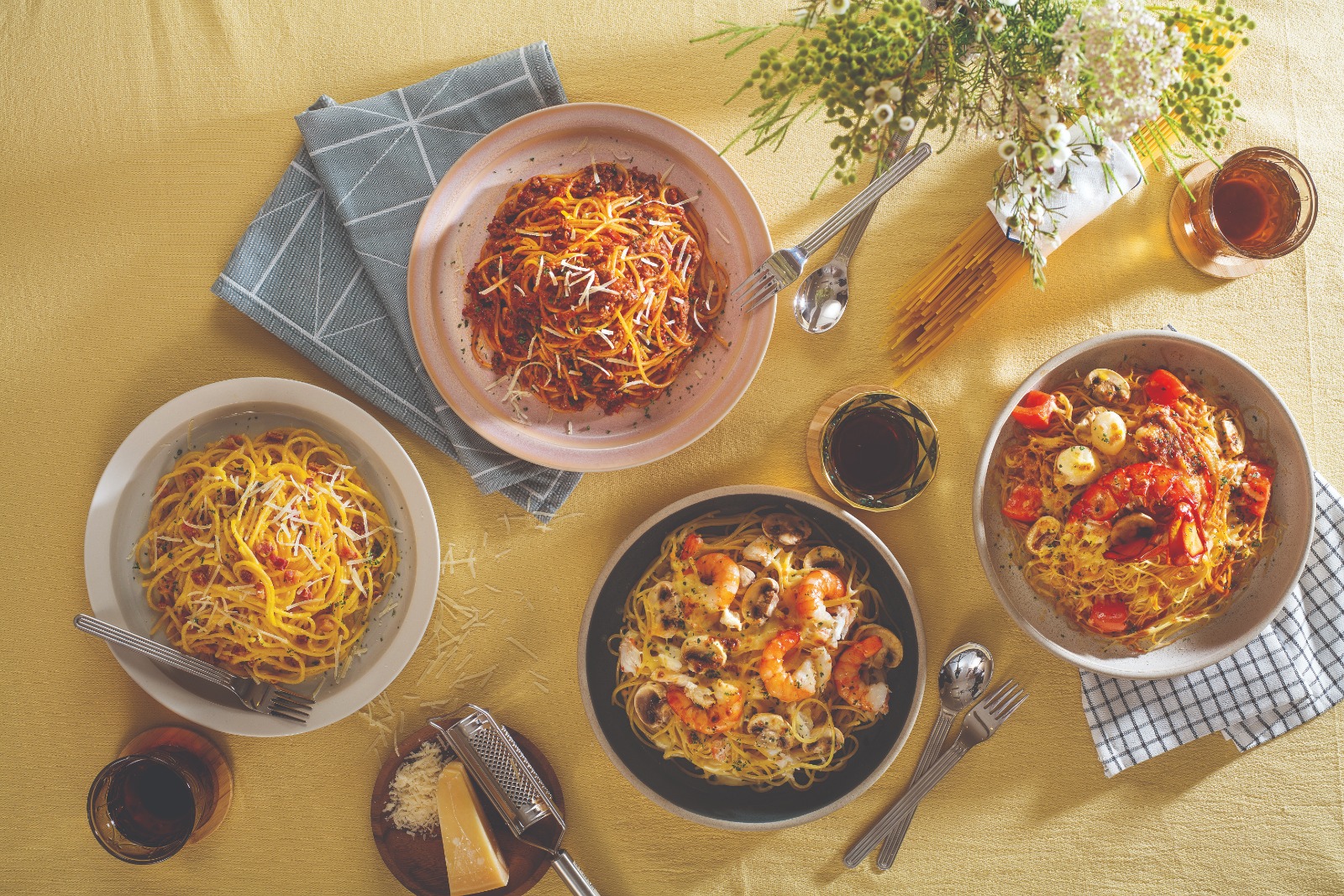 全新推出的必試意粉之選有「四大經典意粉」,包括「雙重芝士焗海蝦‧蟹肉意大利粉」、「巴馬臣芝士肉醬意大利粉(牛肉)」、「芝士焗龍蝦尾‧帶子天使麵」及「芝士卡邦拿意大利粉」,每款香濃吸引。