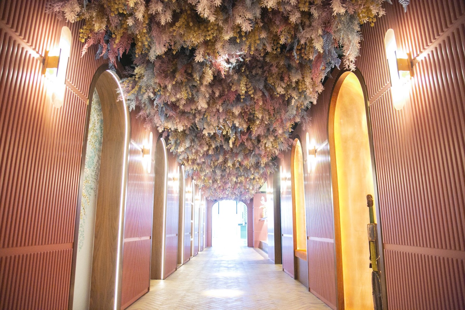 Pier 1929精心設計多個不同的特色區域,並以中西不同文化藝術特色作為設計裝潢。入口先有價值不菲的景泰藍屏風,隨後有橢圓天花,以中法合壁的風格營造異國風情。步入中庭時更有一條參考倫敦Annabel’s Mayfair鮮花元素的走廊,絕對是打卡之選。餐廳大堂更坐擁270度維港無敵海景,更設有法國結合東方色彩的涼亭酒吧。