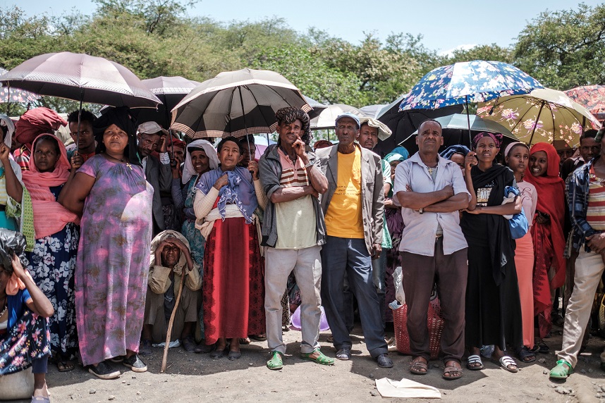 埃塞俄比亞的阿塔耶(Ataye),當地村鎮遭戰火摧毀,民眾在排隊等待領取救濟糧食。