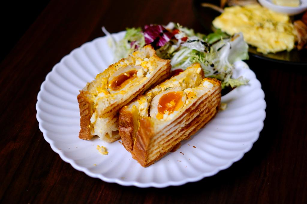 「溏心蛋沙律吐司」($48)選用半熟溏心蛋伴以碎蛋,每口都感受到不同的雞蛋滋味。