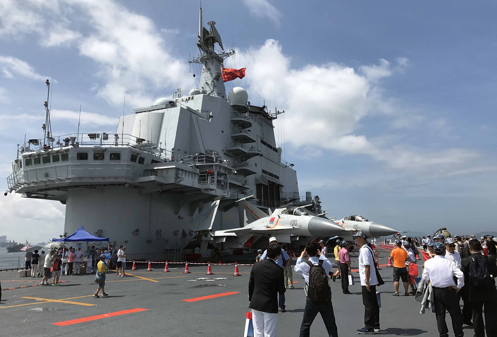 8日,遼寧艦正式開放,大批市民登船齊呼:「遼寧艦,我們來了,祖國萬歲」,還有長者登艦後熱淚盈眶表示「真的好開心!」登艦市民仔細參觀艦上設施、戰機等,亦紛紛和航母上官兵合影留念,還有市民仿照此前新聞中見到的海軍官兵在飛機起飛時的指揮手勢,在航母甲板擺出「航母Style」姿勢。