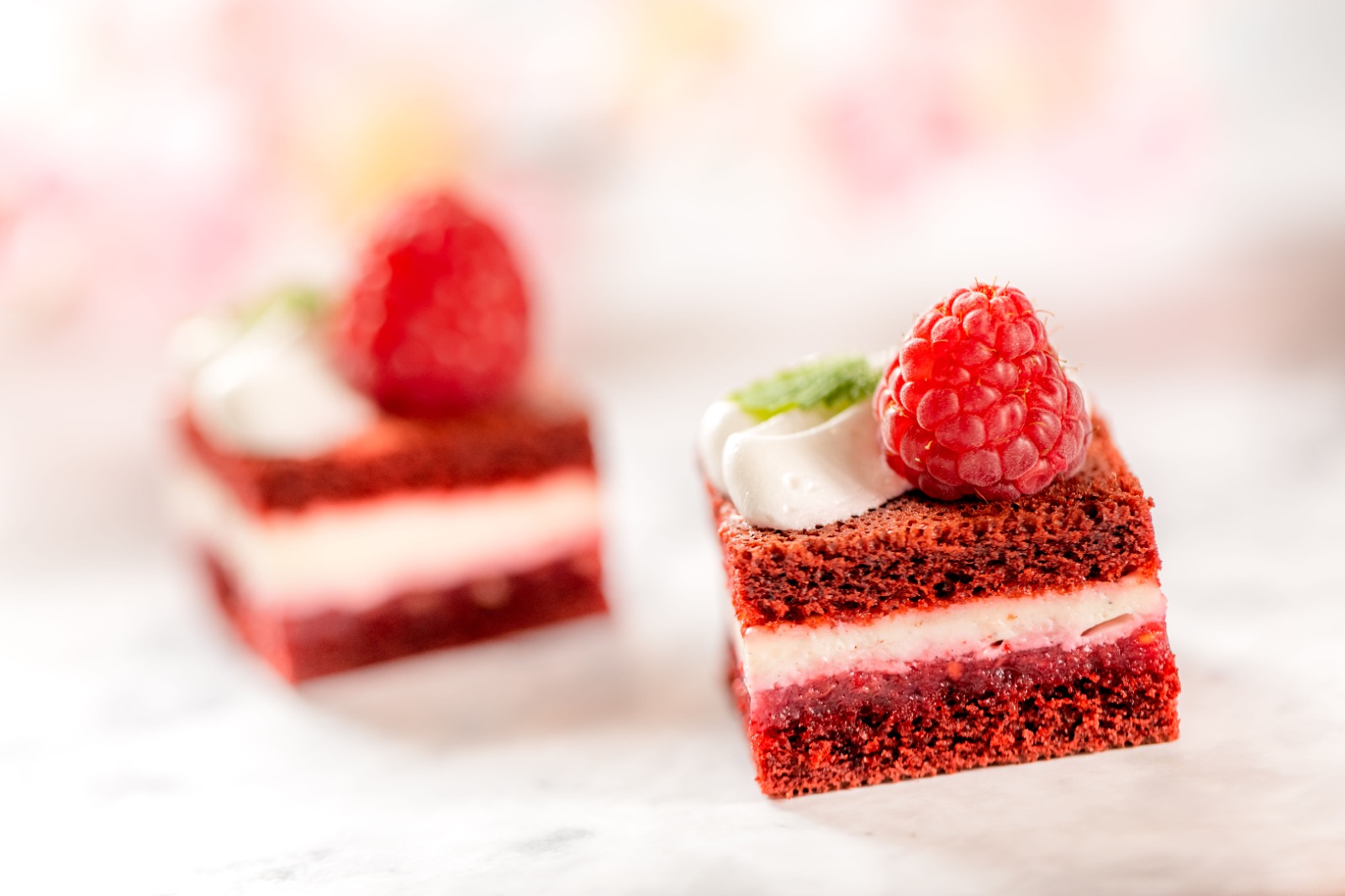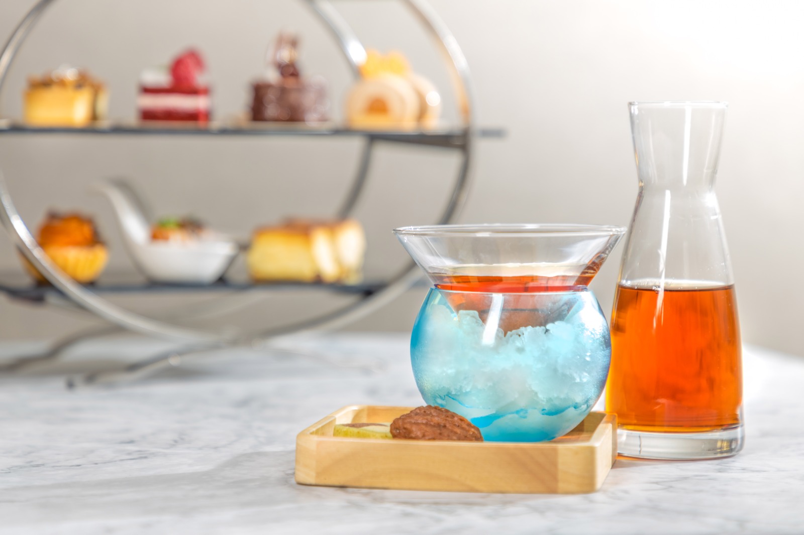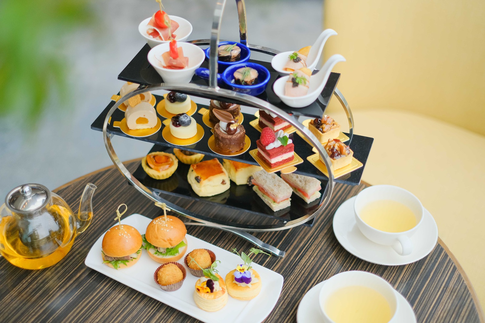 每位食客可於四款鹹點及六款甜品中選擇共10件茶點,一系列精緻甜品包括:覆盆子紅絲絨蛋糕、杏脯栗子慕絲、黑森林卷、紅莓合桃撻、藍莓芝士餅、英式鬆餅配手工果醬及忌廉。