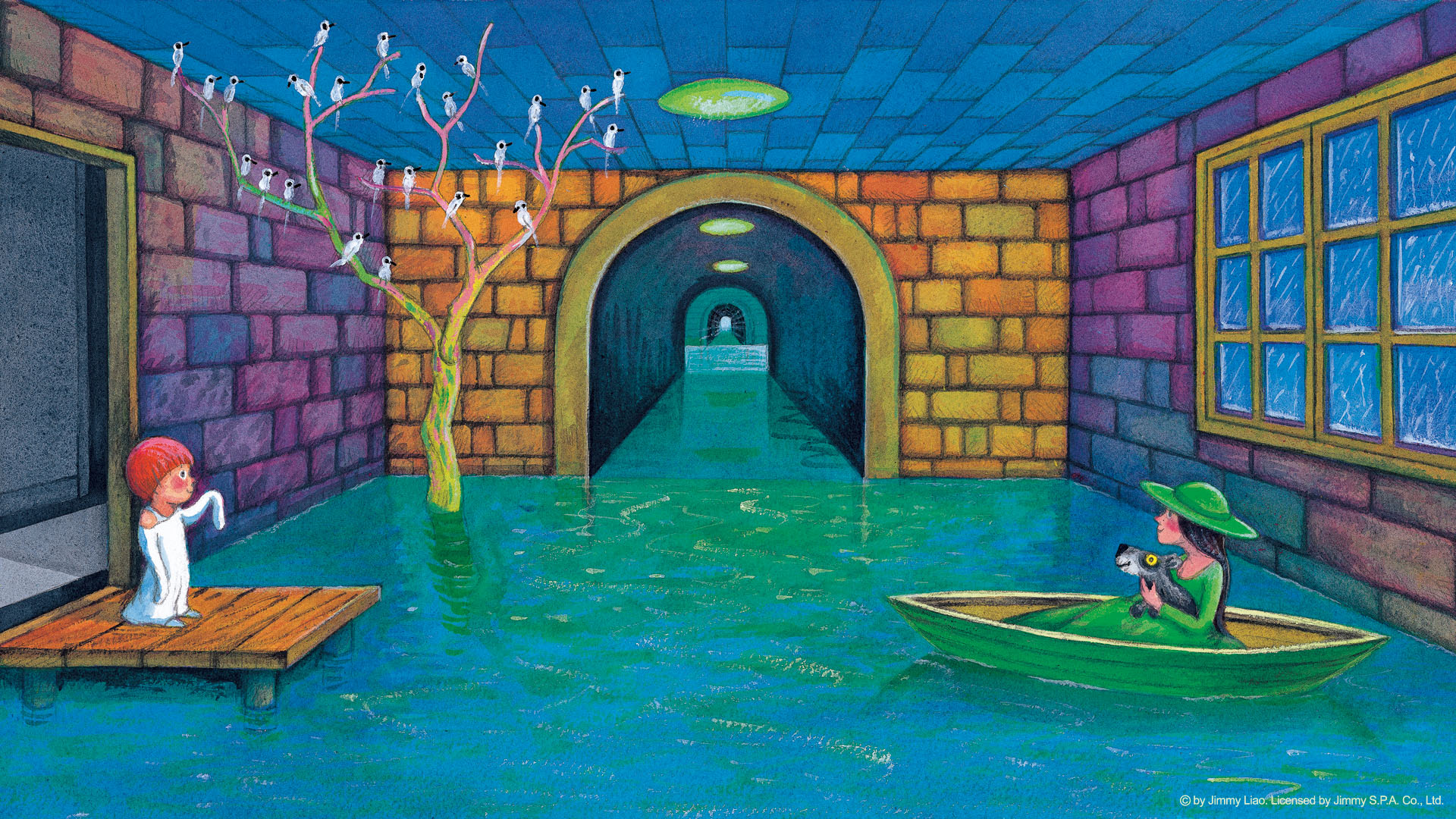 《我的世界都是你》中,讀者以弄丟黑狗的小女孩視角,進入一間舊旅館,旅館裡的房間裝著不同旅人的各式經歷,他們難以釋懷的過往記憶,卻給了女孩給了新的機會,去重新看待自己的境遇。這本繪本也試圖傳達這樣的訊息:世間變化莫測,難以確保永恆,但重要的記憶卻可以一直存在心底,有了它們,整個世界都會因此綻放不同的光彩。上述四張圖的具體故事,資深幾米書迷一定還記得。