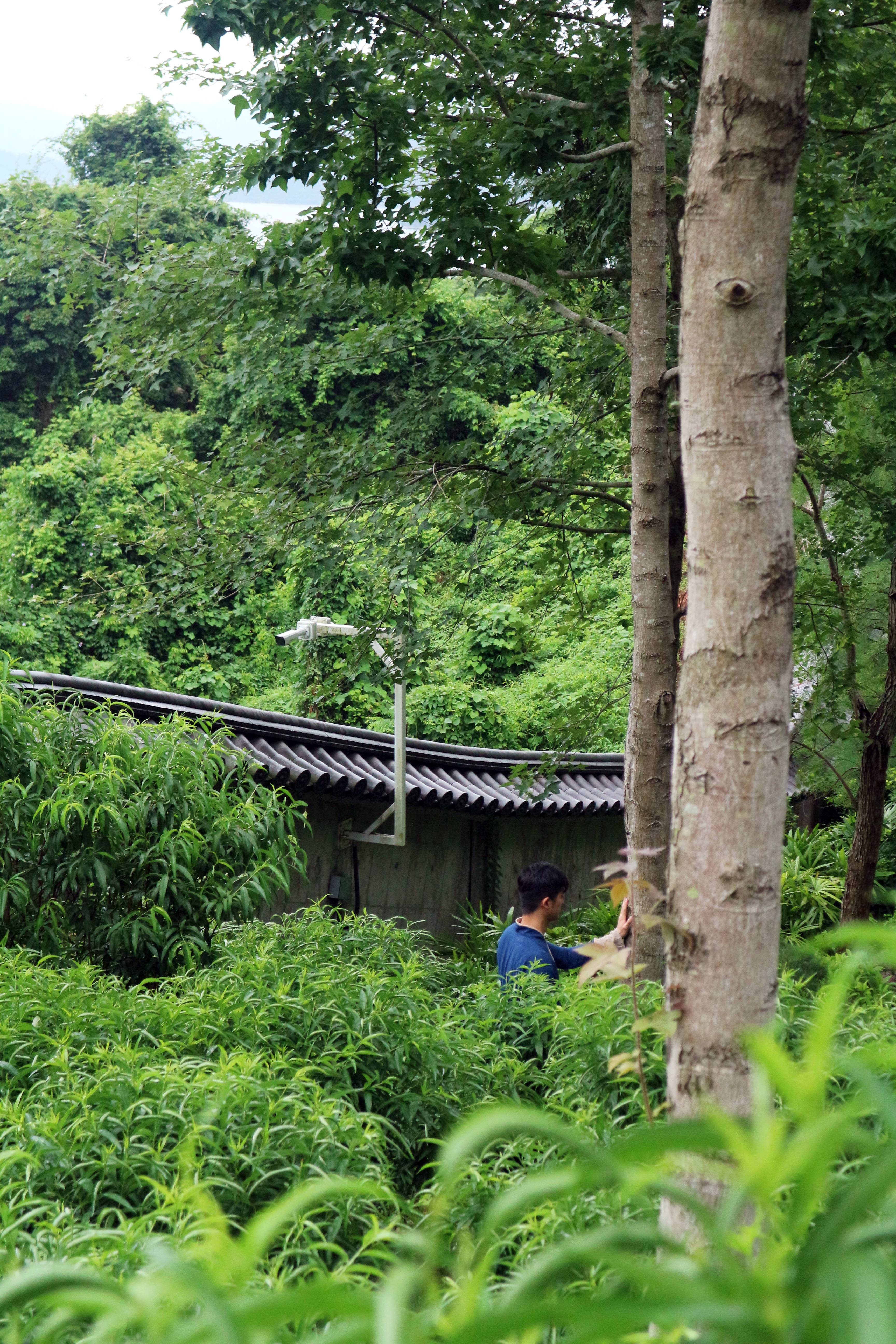 雨中,森林療癒陪伴員示範用手感受小草的柔軟,另一位拍拍他示意暫離避雨。出乎意料,陪伴員仍是默默半蹲,似乎消化著來自植物的訊息,過一陣子才深吸一口氣,張開眼回到「塵世」。似乎是啟示,山林療癒雖以山林先行,最重要的是有一顆願意開放的心,與自然平等,如對話,才能藉助環境,療癒自心。