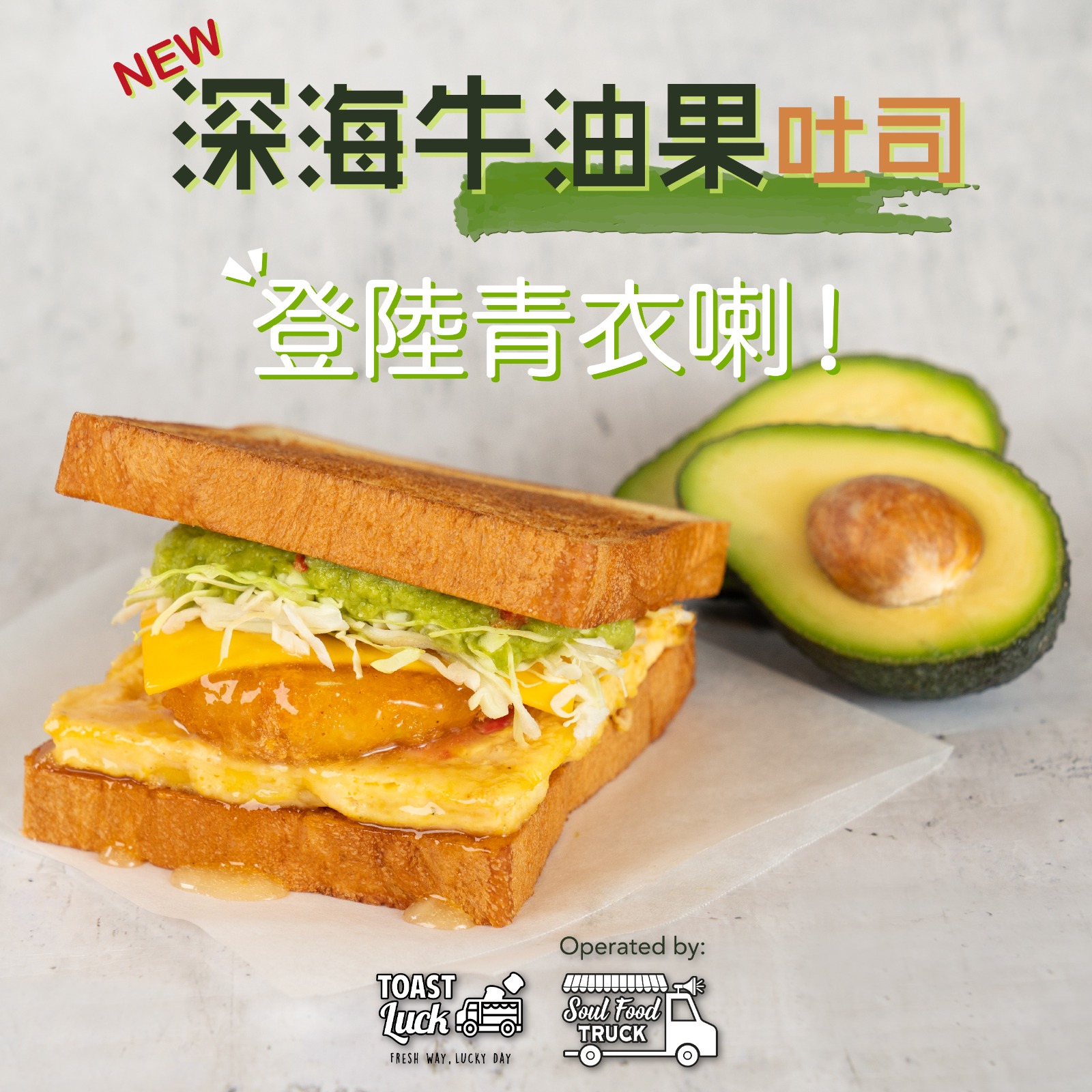 即日起至7月31日期間,為慶祝Toast Luck by Soul Food Truck青衣新店開幕,凡惠顧深海牛油果吐司,即可享8折優惠。大家留意只適用於外賣自取,有興趣的朋友記得把握機會享用優惠啦!