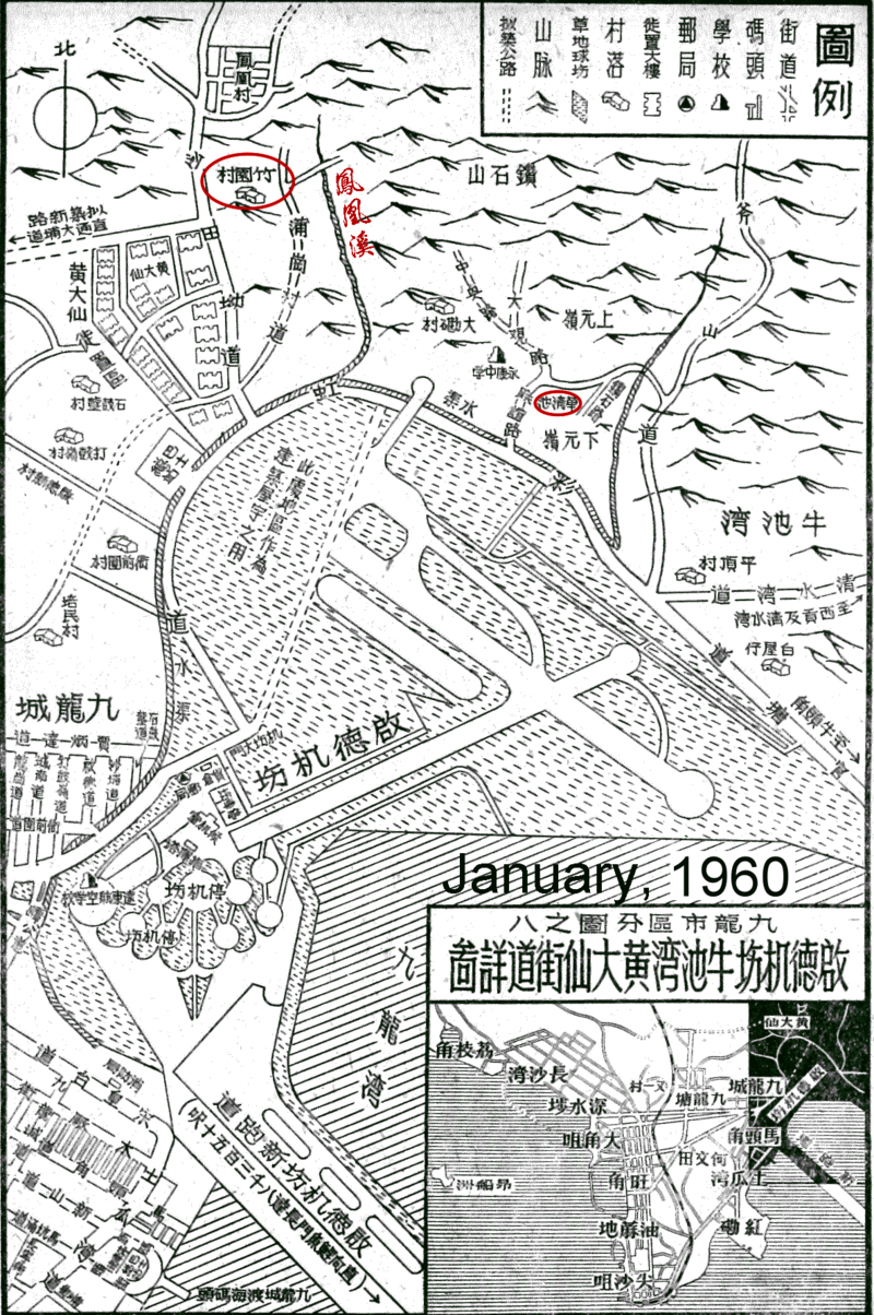 黃大仙區地圖(1960年1月),當時鑽石山仍未被開發
