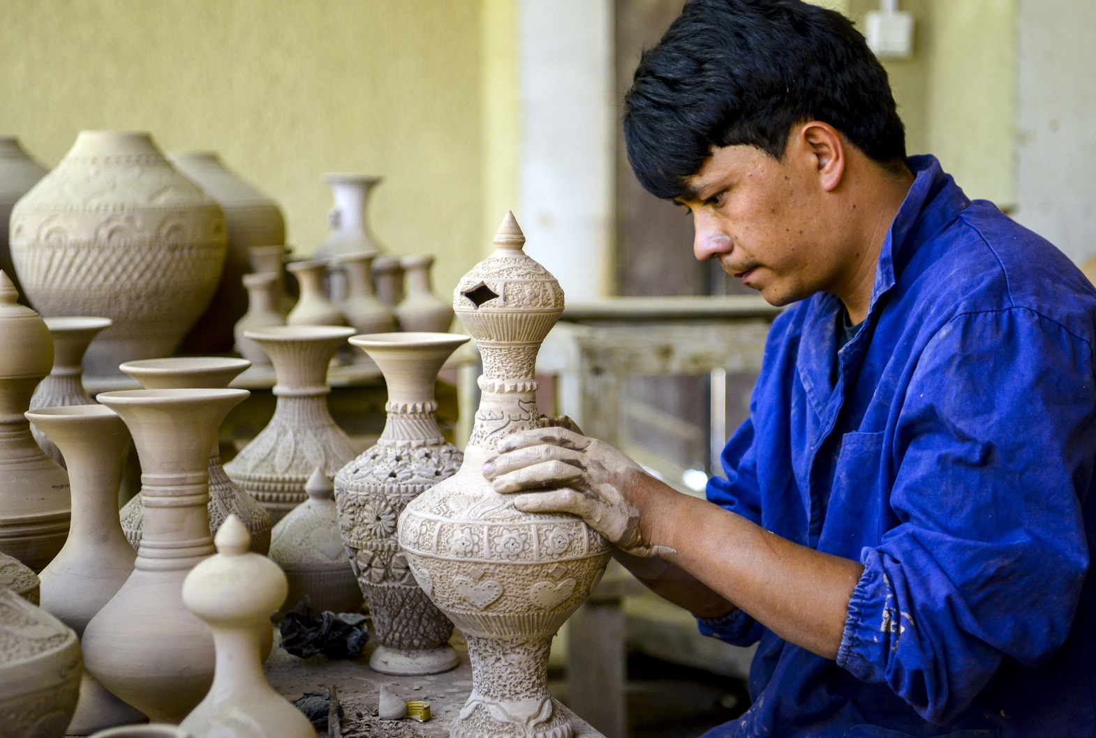 喀什地區英吉沙縣芒辛鎮恰克日庫依村,村民製作土陶產品。資料圖片