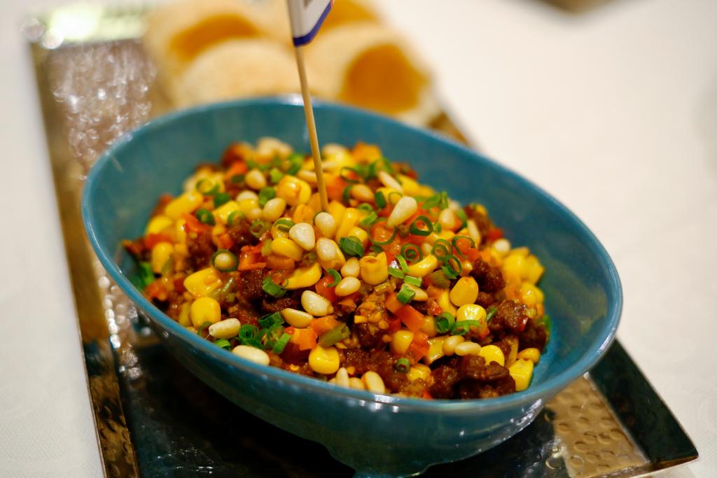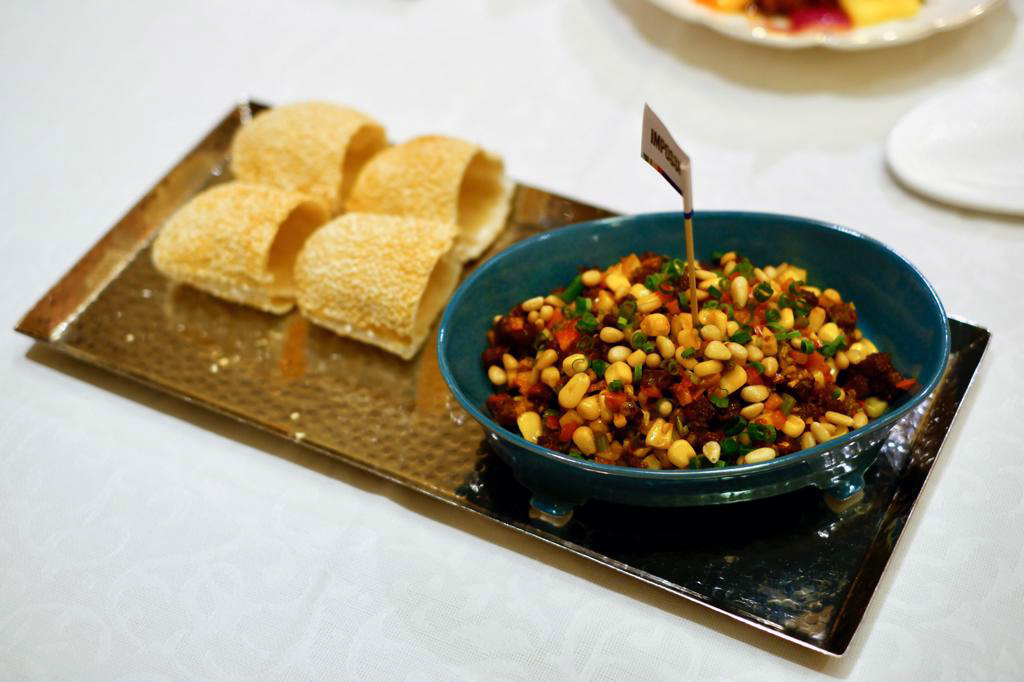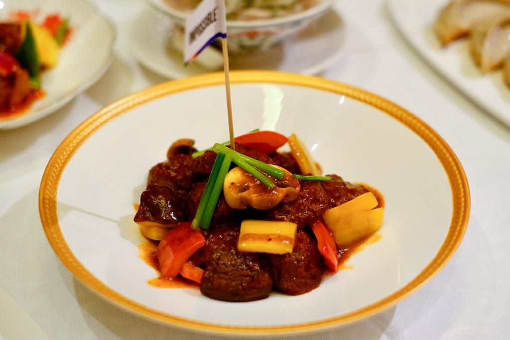 「松子植物牛肉配叉子燒餅」($188)中的松子以慢火油泡,加入Impossible植物牛肉、粟米、彩紅椒及中國芹菜快炒,一口嚐盡芝麻香及多重配料口感。