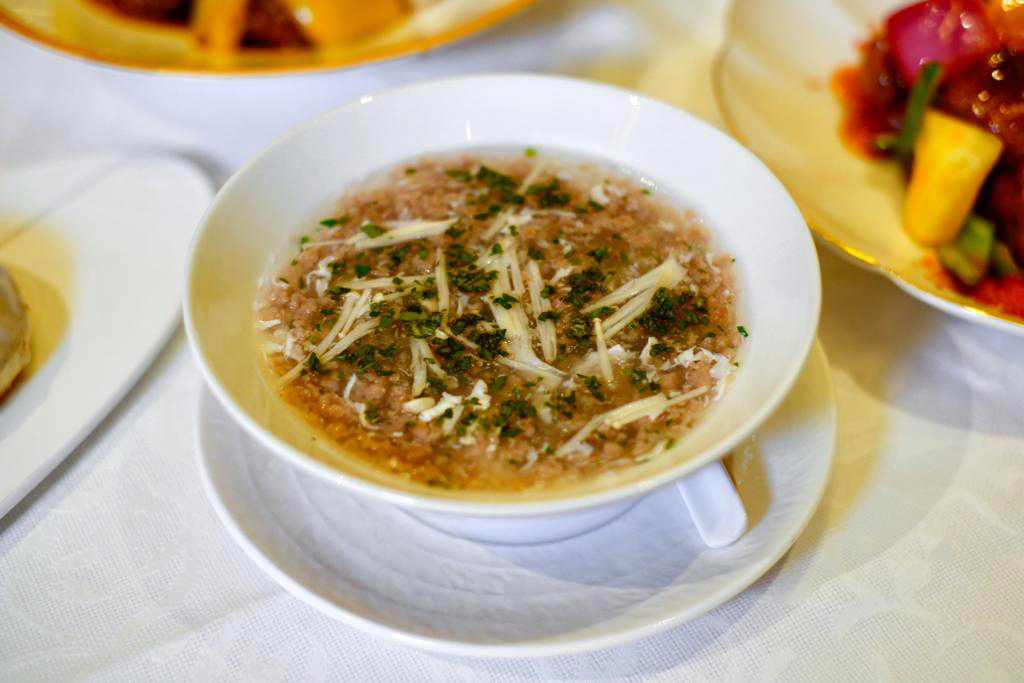 「西湖植物牛肉羹」以Impossible的植物牛肉取代傳統牛肉,另加入蛋白和金菇,入口清爽嫩滑,完美重現杭州經典名菜。