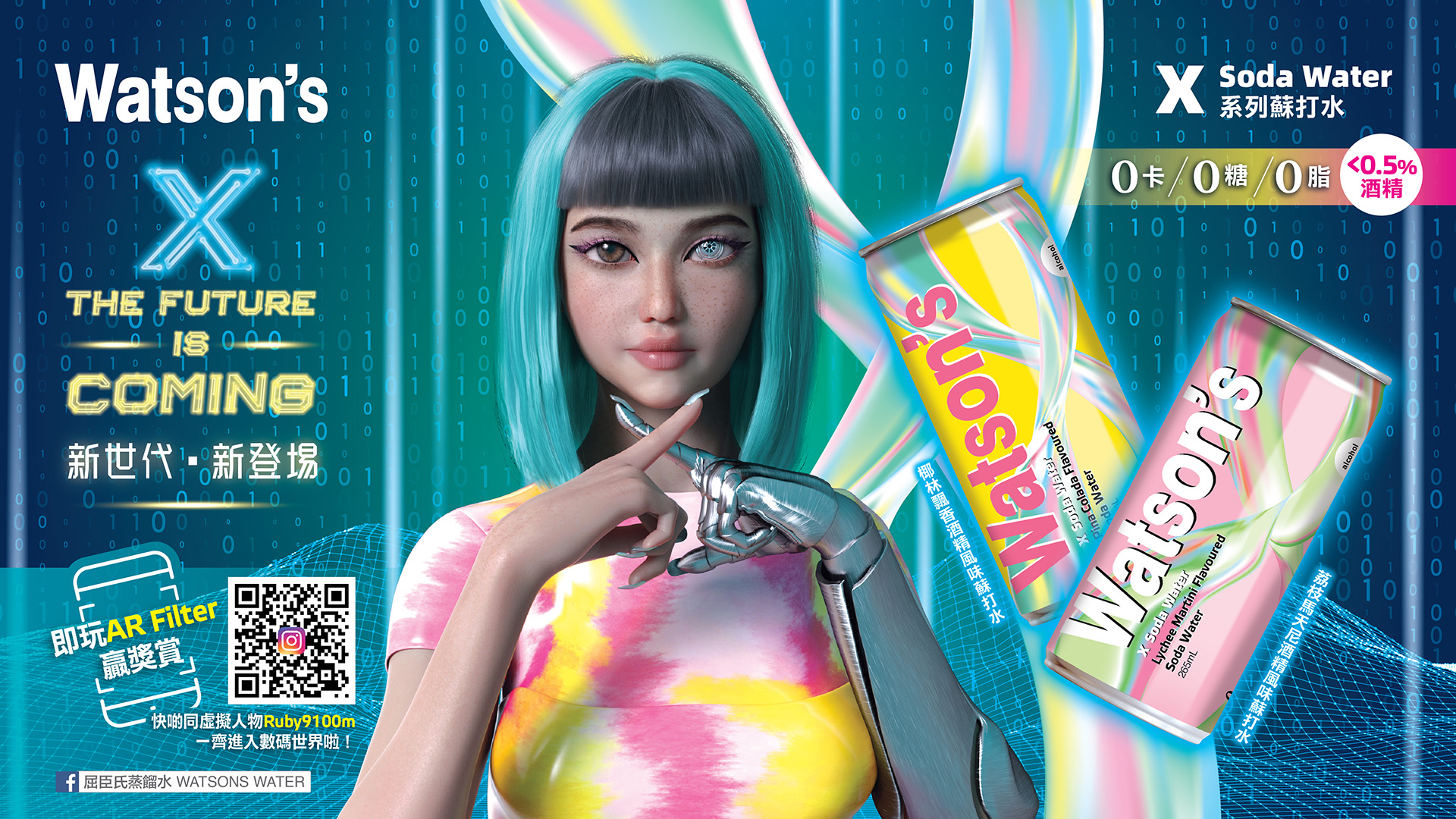 「Watson’s X-Soda」更聯乘新世代人氣虛擬偶像Ruby9100m,首次推出Watson’s X-Soda X Ruby9100m Instagram的限時動態AR Filter。濾鏡以Ruby手指交叉擺出「X手勢」為主軸設計,激發年輕人打破傳統思想,探索未知潛能。大家更可以隨Ruby9100m造型變化,配上不同裝備,猶如一同進入虛擬數碼世界遊玩。有興趣的朋友記得把握機會試玩,並將照片截圖發送至屈臣氏蒸餾水Watsons Water的Instagram專頁,更可獲得現金折扣優惠券。