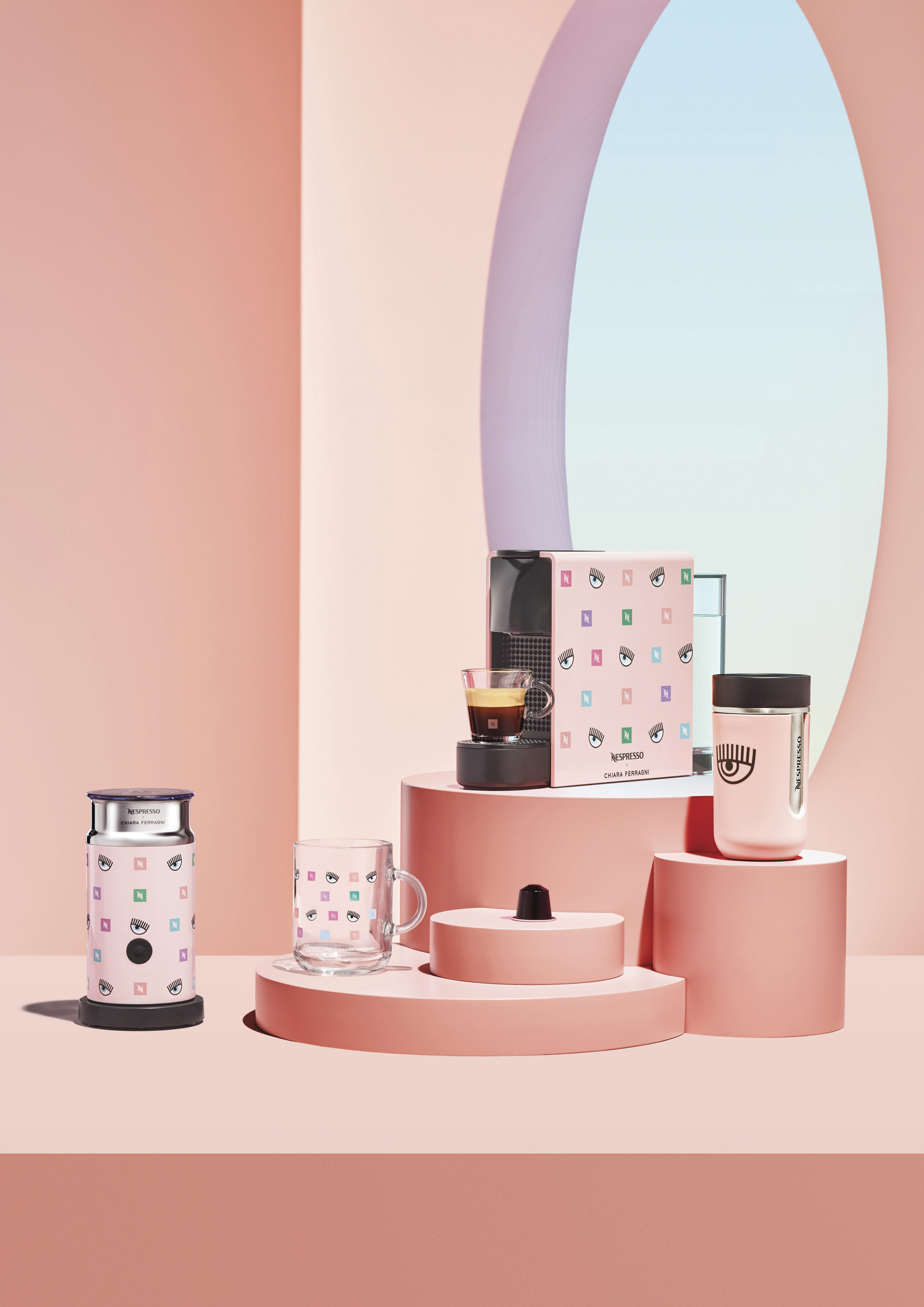 Nespresso x Chiara Ferragni聯乘限量版系列現正於香港有售,當中包括:小巧別緻的「Nespresso x Chiara Ferragni Essenza Mini咖啡機」,絕對是炮製意式濃縮咖啡的首選。「Nespresso x Chiara Ferragni限量版系列的Aeroccino 3打奶器」則能快速打出輕盈綿密的冷熱奶泡。「Nespresso x Chiara Ferragni Nomad隨行咖啡樽」方便攜帶,隨時為你送上滋味咖啡。