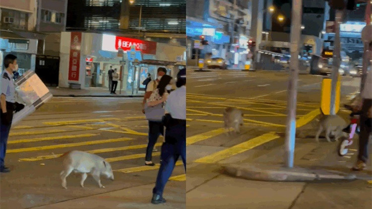 【橙訊】近年在鬧市不時發現野豬蹤影,昨晚港島鰂魚涌更見到野豬媽媽帶著三隻小豬行街街的溫馨場面,野豬一家獲得警方護送過馬路,吸引不少途人用手機拍攝。