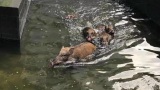 【有片】野豬一家五口中環花園水池暢泳 途人爭相拍照