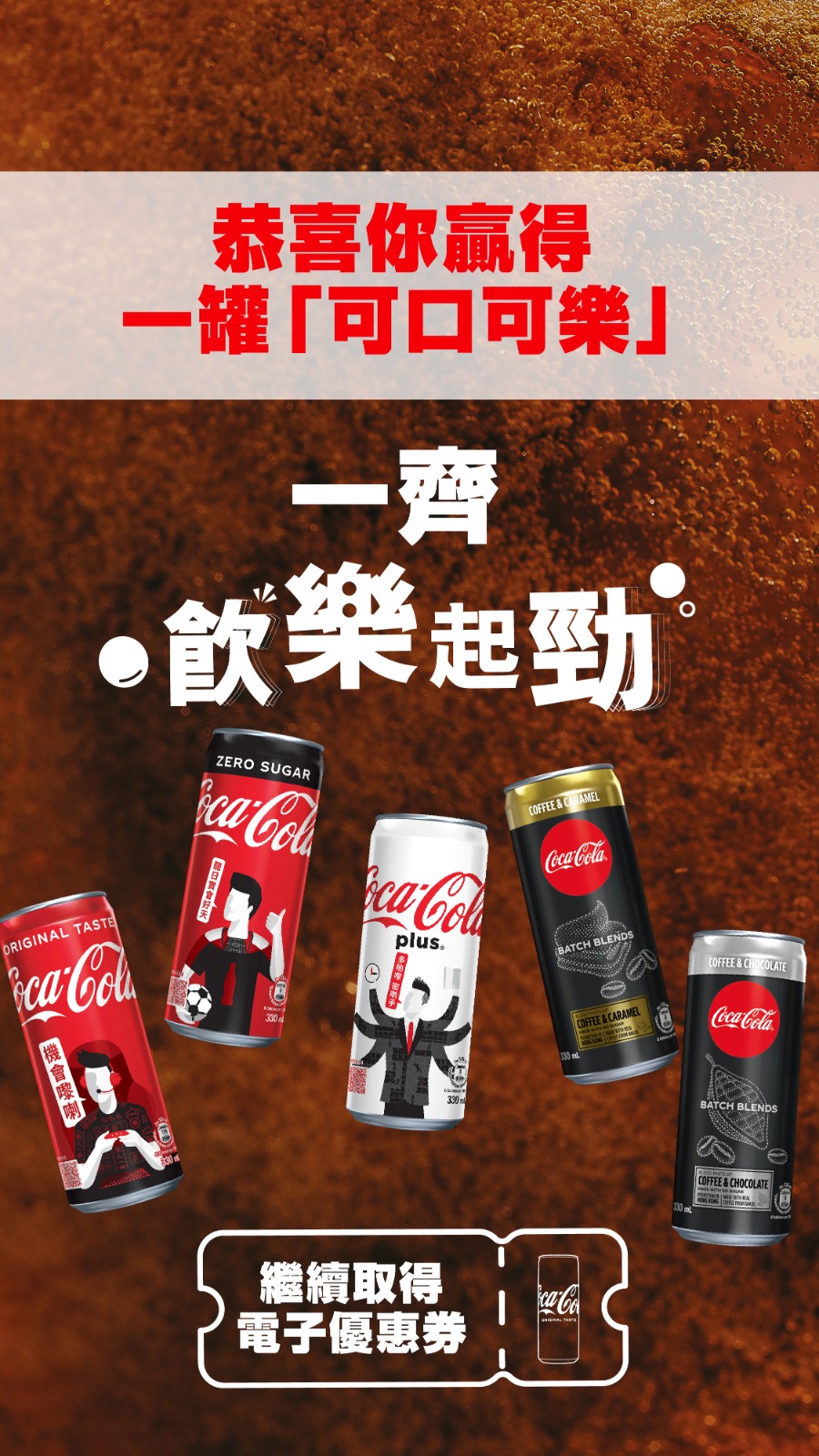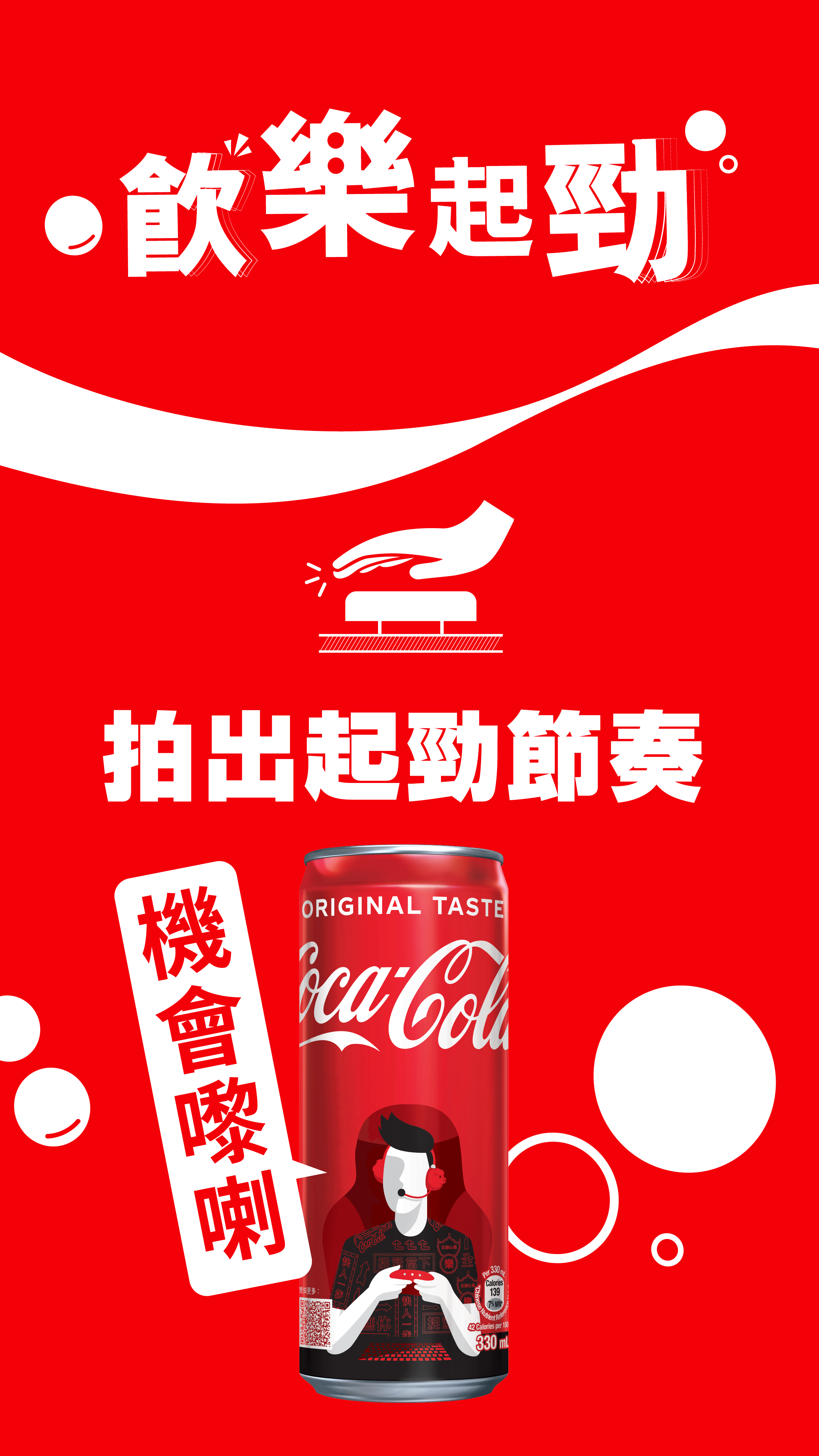 即日起至8月24日期間,凡於概念店購買任何「可口可樂」、「雪碧」、「玉泉」或「芬達」系列410至500毫升膠樽裝汽水一支,即可參加店內的「飲樂起勁 拍出起勁節奏」互動遊戲一次。大家只需跟隨動感音樂打出強勁節奏,限時内將螢幕左上角的罐裝「可口可樂」裝滿,即可贏取「可口可樂」330毫升一罐及電子優惠券一張。