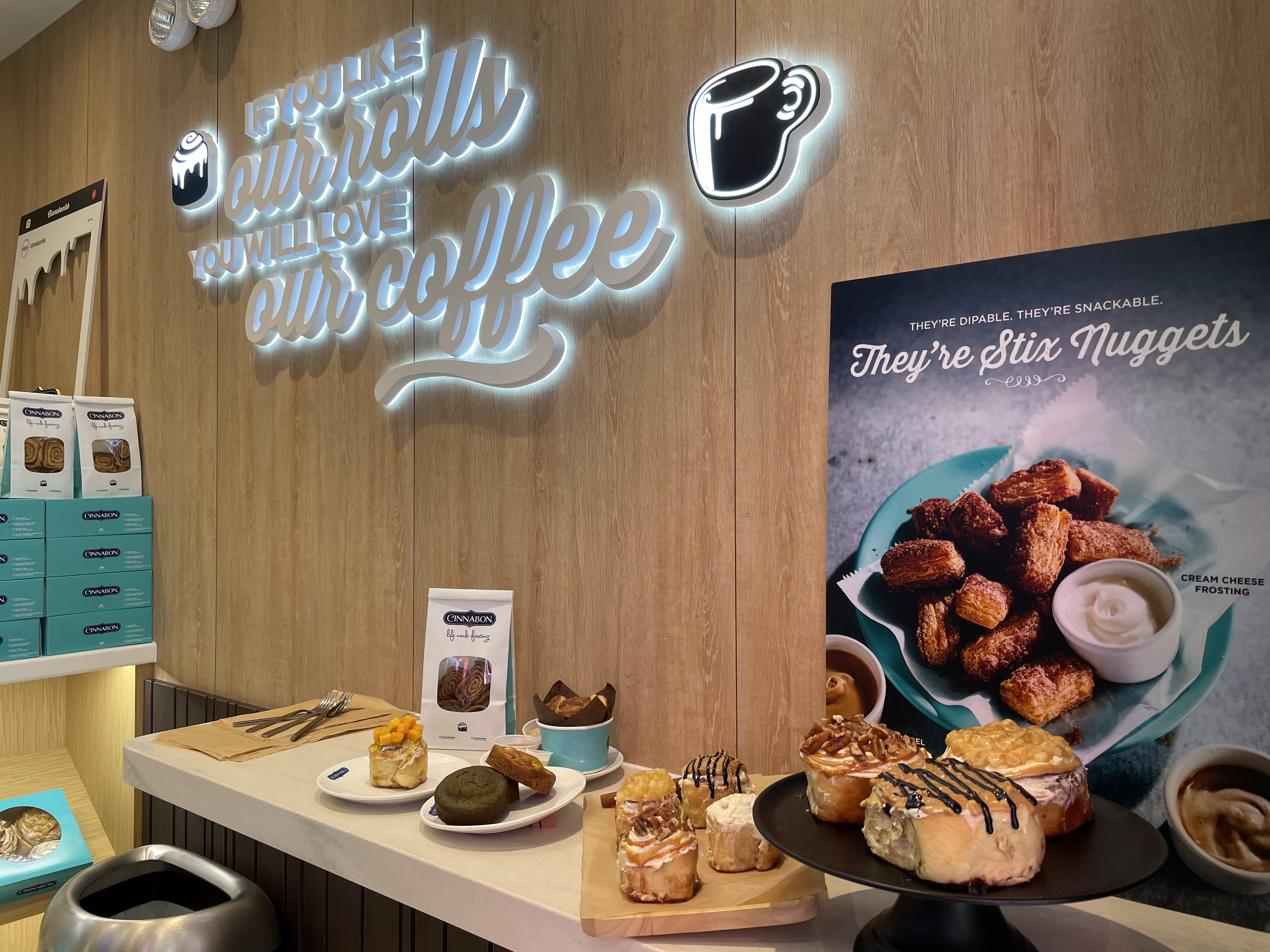 適逢新店開幕,Cinnabon銅鑼灣分店更限定推出「迷你玉桂卷CinnaPack套裝」,一盒包括有一件經典口味玉桂卷、一件焦糖核桃玉桂卷、一件黑朱古力花生醬玉桂卷及一件復刻版焦糖蘋果玉桂卷,滿足粉絲們的四個願望。