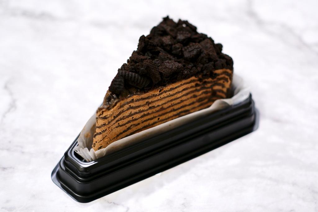 由法國Gateau Mille Crepes變奏而成的「曲奇朱古力忌廉千層蛋糕」($22),嚴選日本原材料製成班戟皮,班戟透薄軟綿,配上朱古力忌廉,入口濃厚軟滑。頂層配上OREO曲奇碎增加口感,濃厚的朱古力香氣慢慢滲透味蕾,味道層次豐富。