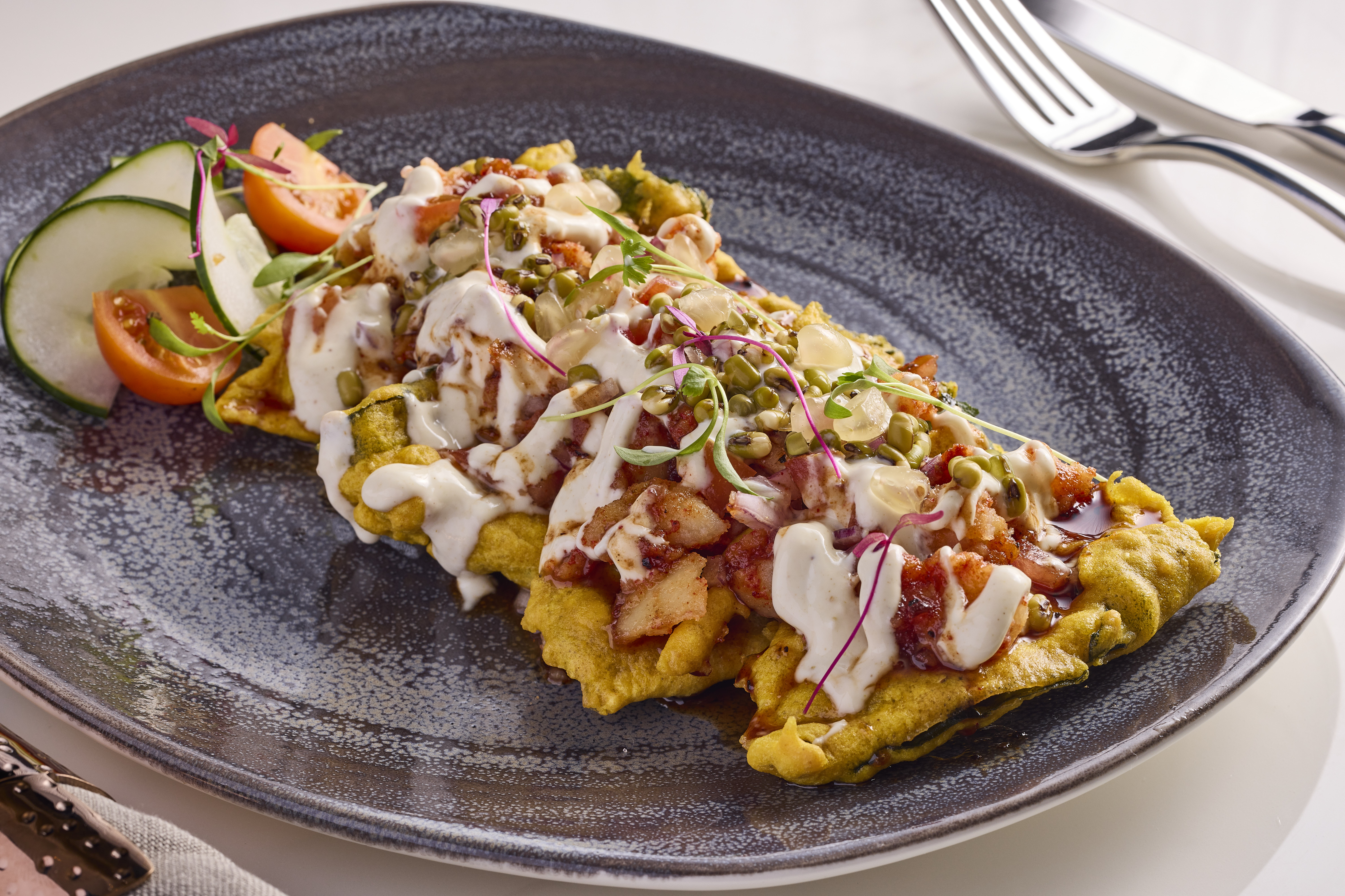 前菜及小食推介由傳統小食變奏成的「Palak Patta Chaat」,香脆可口。菠菜裹以鷹嘴豆漿香炸而成,佐以馬鈴薯羅望子汁及少許乳酪,味道獨特。