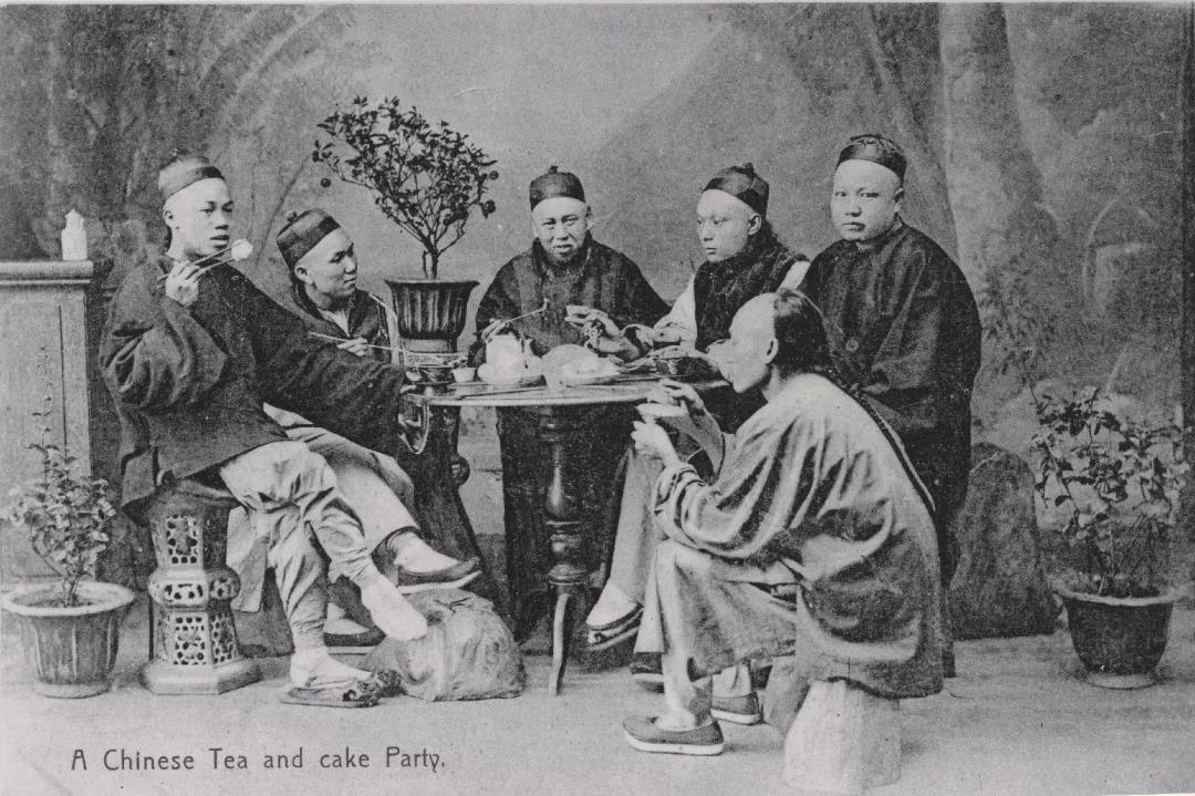在茶樓享受「一盅兩件」的茶客,約1900年。