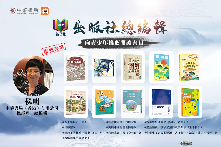 香港中華總經理兼總編輯侯明分享她對於閱讀的看法:「五千年的中華文化,源遠流長!要了解今天的中國如何從封建走向共和的偉大轉變、要了解如何從傳統文化走向現代文明、要學習中華民族的智慧、要了解中華各民族的風土人情及名川古跡,我們必須要讀萬卷書,書帶給我們無限的想像空間、歷史的真相、科學的理據、萬物的生長、人生的哲理、道德的規範……。」她並推薦了《五千年良渚王國》、《新說山海經︰白鹿記》、《長城繪》等一系列優秀出版物,其中不乏獲獎書籍。