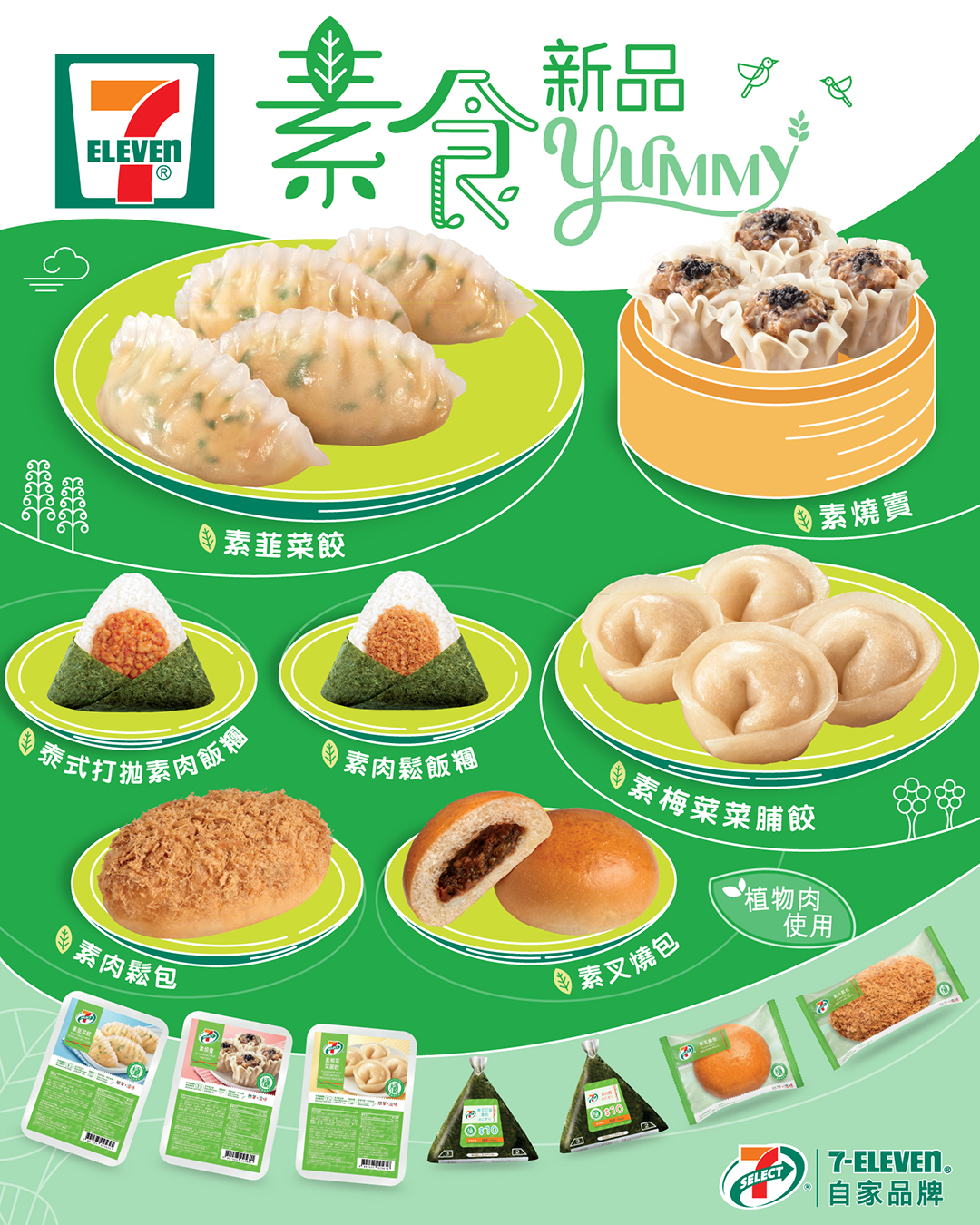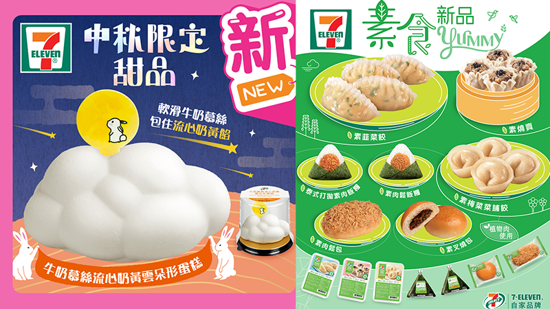 【橙訊】7-Eleven便利店旗下的7-SELECT推出一系列素食美食,包括飯糰、素包點及素點心,款式繁多,主打泰式同中式口味。更有中秋限定的「牛奶慕斯流心奶黄雲朵形蛋糕」及「榴槤忌廉千層蛋糕」。