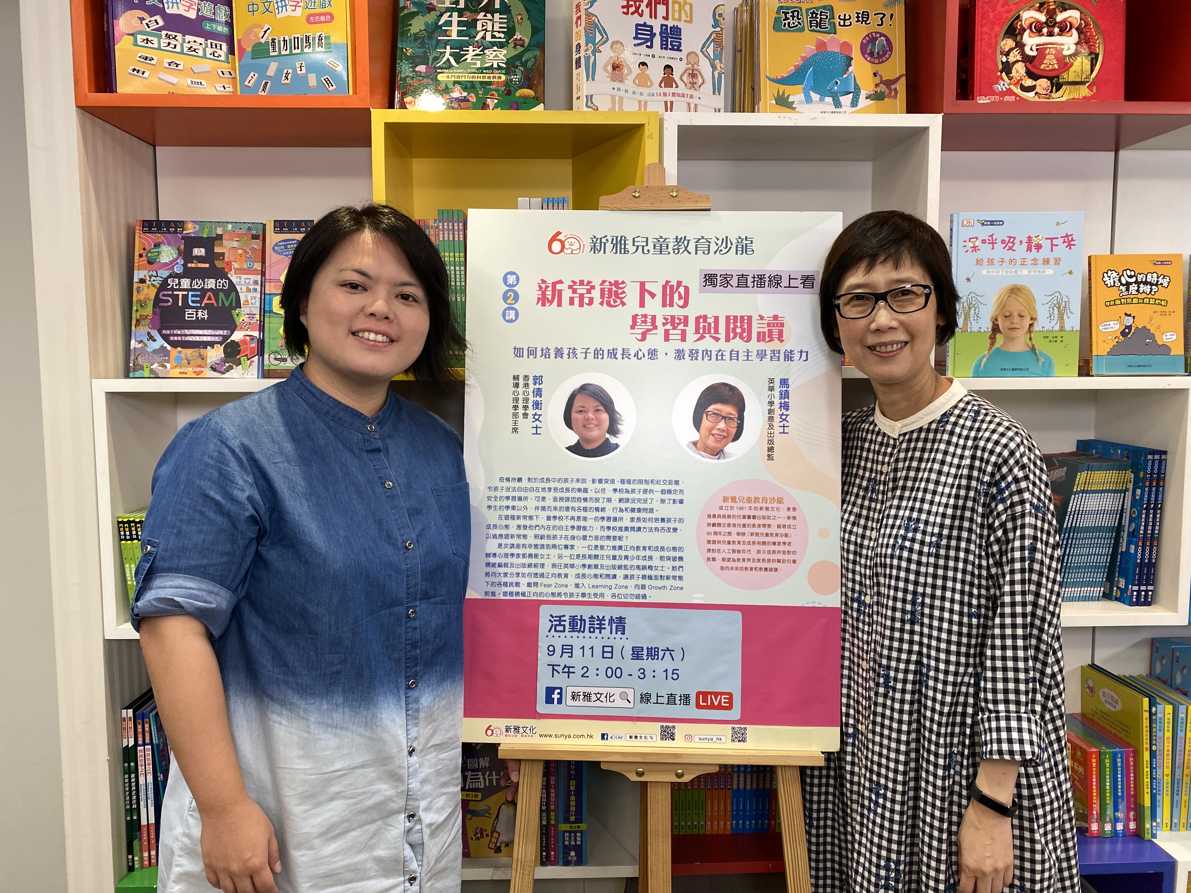 新雅文化邀請了香港心理學會輔導心理學部主席郭倩衡、英華小學創意及出版總監馬鎮梅,分享她們對正向教育法的心得,鼓勵家長加以培養孩子良好成長心態和閱讀習慣,積極面對新常態下的各種挑戰。