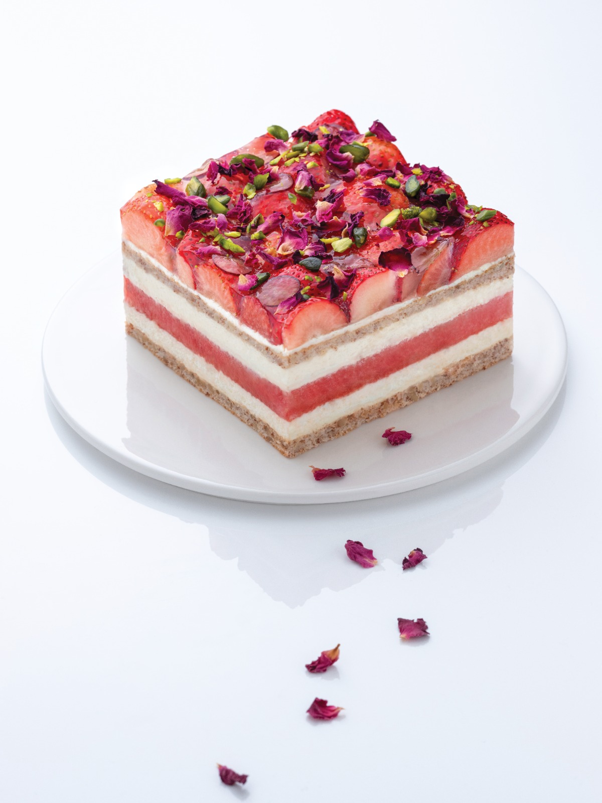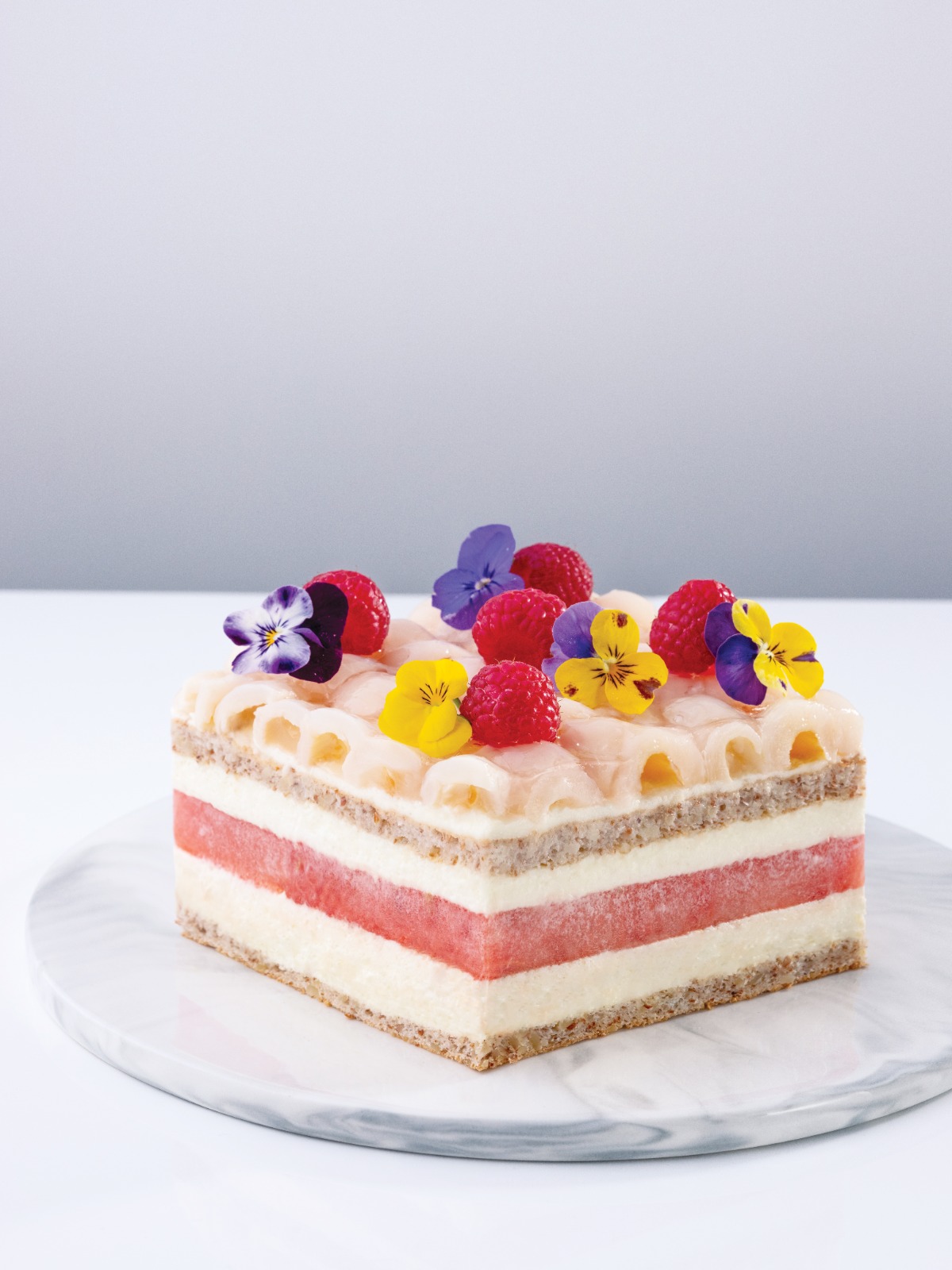 一口咬下「招牌草莓西瓜蛋糕LIGHT」,當中的西瓜、玫瑰及杏仁味同時湧進味蕾,帶給你一種既新鮮又驚喜的感覺。