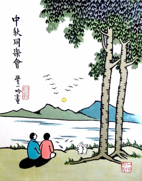 前些天中秋,在家整理舊籍,一套由海天出版社於1993年出版的《護生畫集》赫然在目,其中一幅由豐子愷繪畫、弘一法師題詞的《中秋同樂會》可謂「應景之作」。