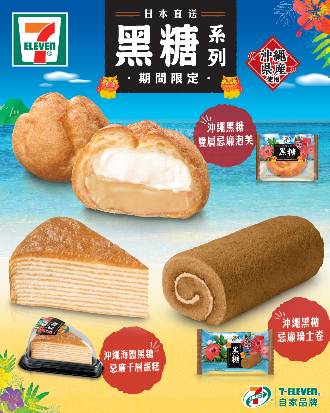 【橙訊】甜品界的種類花款百出,而泡芙、千層蛋糕及瑞士卷更是不少港人喜愛的甜品之一。今期7-SELECT聯乘「日本沖繩縣香港事務所」,以沖繩產黑糖製作出期間限定甜品,特別推出「7-SELECT 沖繩黑糖雙層忌廉泡芙」、「7-SELECT沖繩海鹽黑糖忌廉千層蛋糕」及「7-SELECT 沖繩黑糖忌廉瑞士卷」。