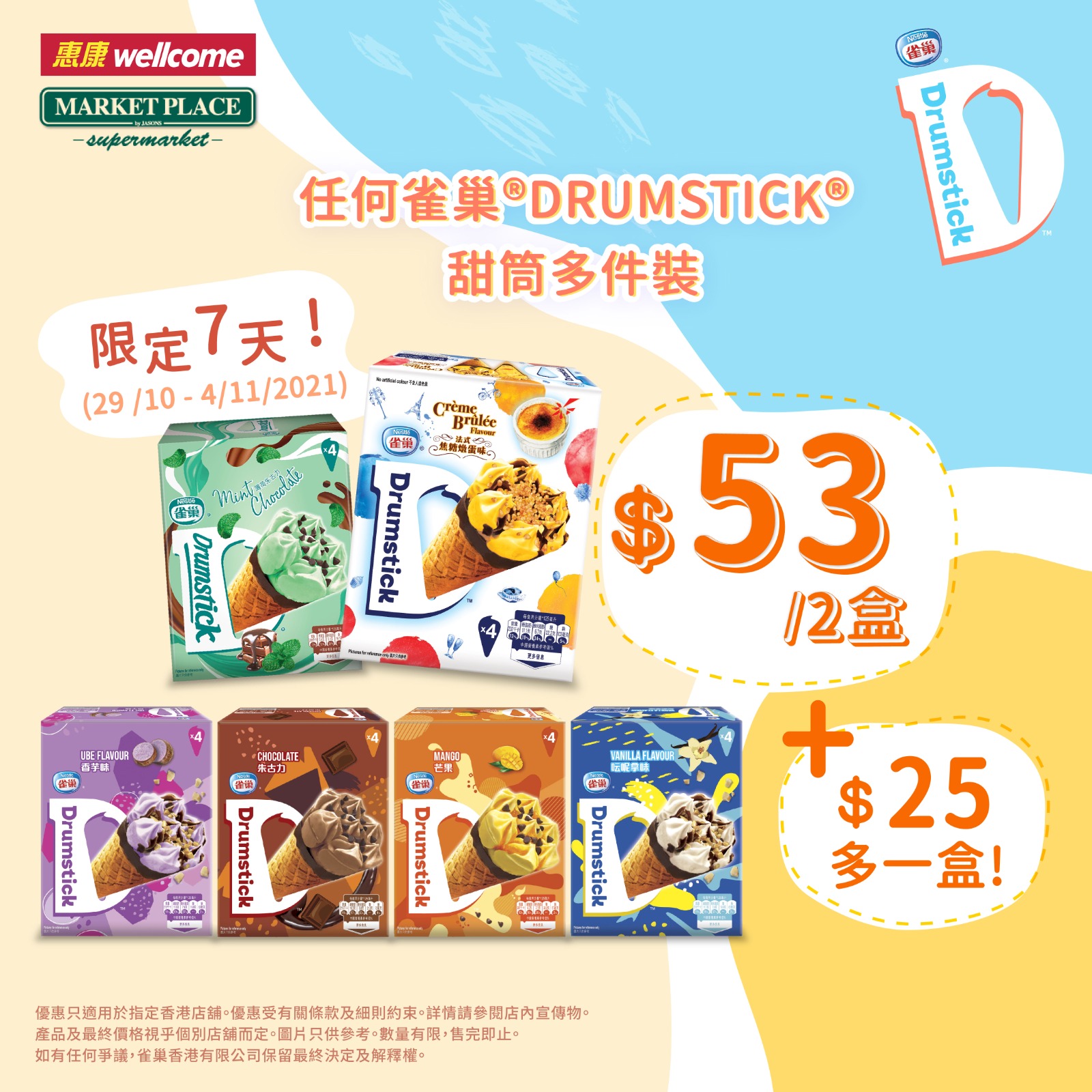 $53可選購指定口味的雀巢® DRUMSTICK®甜筒多件裝