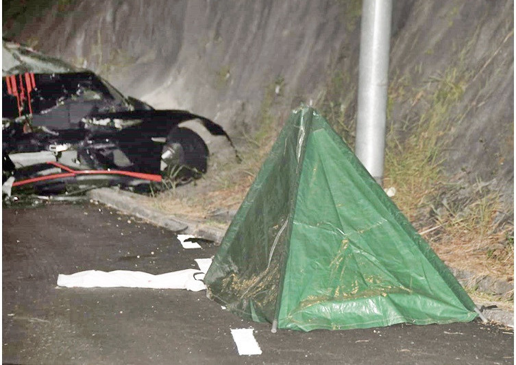 林寶堅尼在車禍中被撞成廢鐵,全車損毀嚴重,車頭扭曲變形,碎片散落一地。司機一度被困車內,身體多處受傷,頭部重創當場喪命,有傳部分頭部被削去。