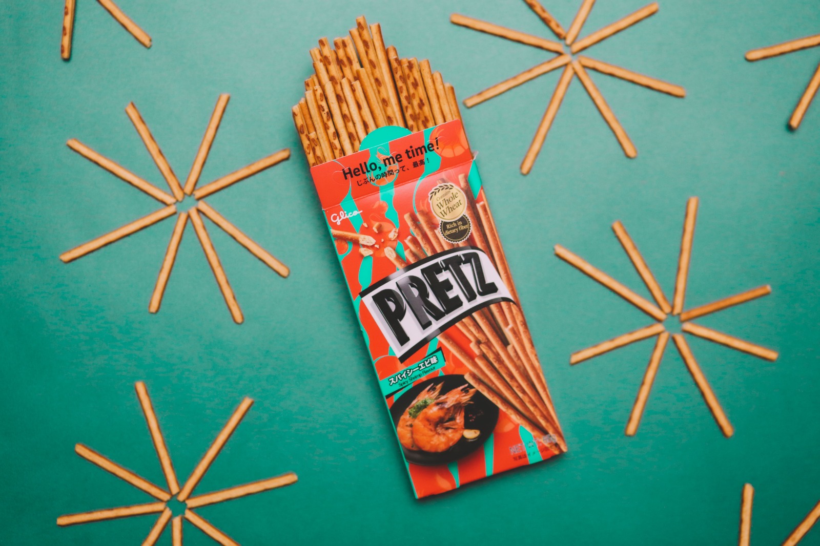 「固力果百力滋香辣大蝦味餅乾條」加入特製味粉,主打輕微的辣味。