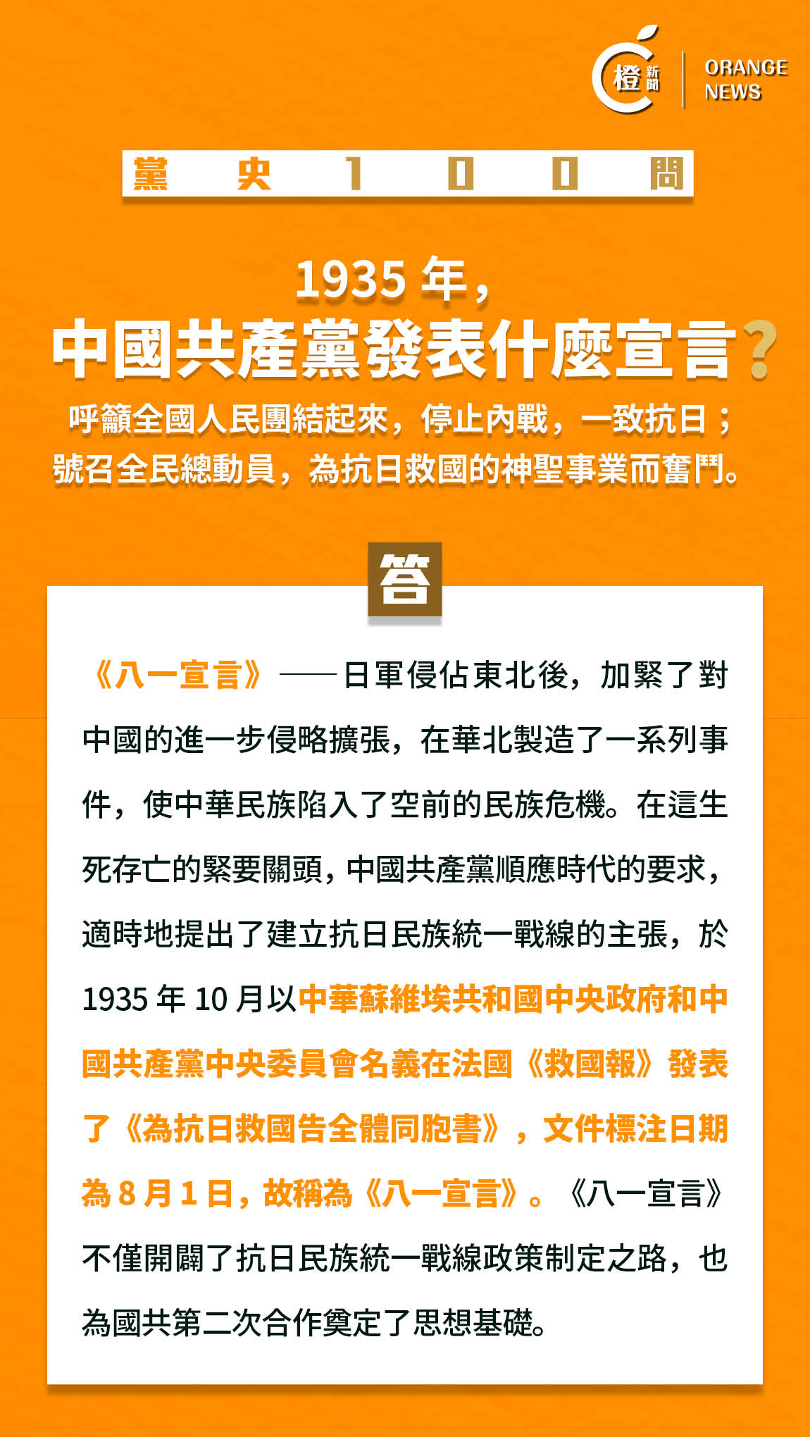 【橙訊】為熱烈慶祝中國共產黨成立100周年,《橙新聞》專門開設「黨史100問」欄目,以對答形式闡述中國共產黨百年歷史,讓讀者深入學習貫徹中國特色社會主義思想,加強了解國家發展。