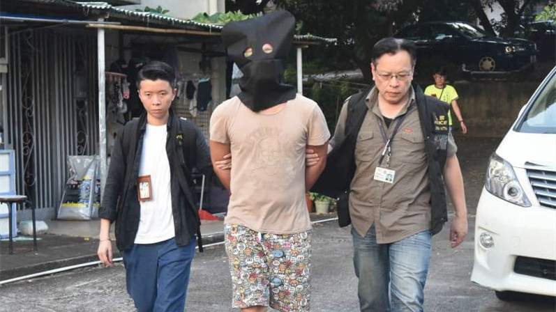 被告蕭國偉(蒙頭者)被判入獄五年四個月。資料圖片