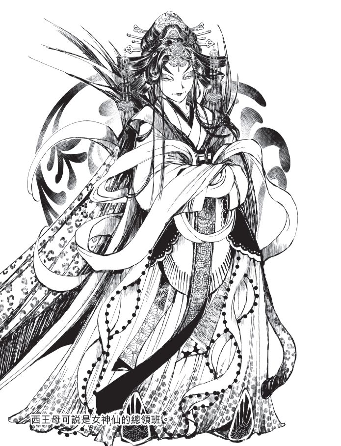 西王母身份眾多,《山海經》是預警女神,西漢《穆天子傳》她成了天帝之女,召見王帝,共醉於瑤池。世俗據神怪故事、戲曲、說書等皆言王母娘娘乃玉皇大帝之正室,又有說是「東王之后」,總之是仙界「女仙」的總領班,女神仙的首領。這是道教的封座。道家神仙族譜說:王母娘娘是嫁了神仙,她以皇后居身份,這點不置疑。晉《漢武帝內傳》記載她與漢武帝共飲,漢武帝獲贈仙桃。中國民間盛傳是桃乃不死藥,這便讓王母與「不死」帶上關係。很多人都渴望永生,殭屍,Vampires,Zombies皆不死,但是美作家Anna Rice在大作Interview with Vampire中已點明:不死比死亡更慘,已失親友,誰可傾訴?中國人相信「神仙」永遠快樂,有何證據?