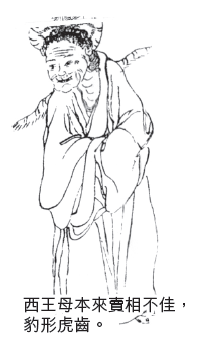 最初,她掌管災難、疫病,《山海經》「西王母人身虎齒,豹尾蓬頭云云」,乃西王母,「西方白虎之神,非西王母之形也。」「西王母由混沌道氣中,西華至妙之氣結氣成形,厥姓侯氏,位配西方。」這就是西王母最早的來歷。此時賣相不佳,豹形虎齒,是有蛇身的兇獸(女神),十分驚人,且會傷人。殷商卜辭已有「西母」與蛇身女媧類似的獸形女神。